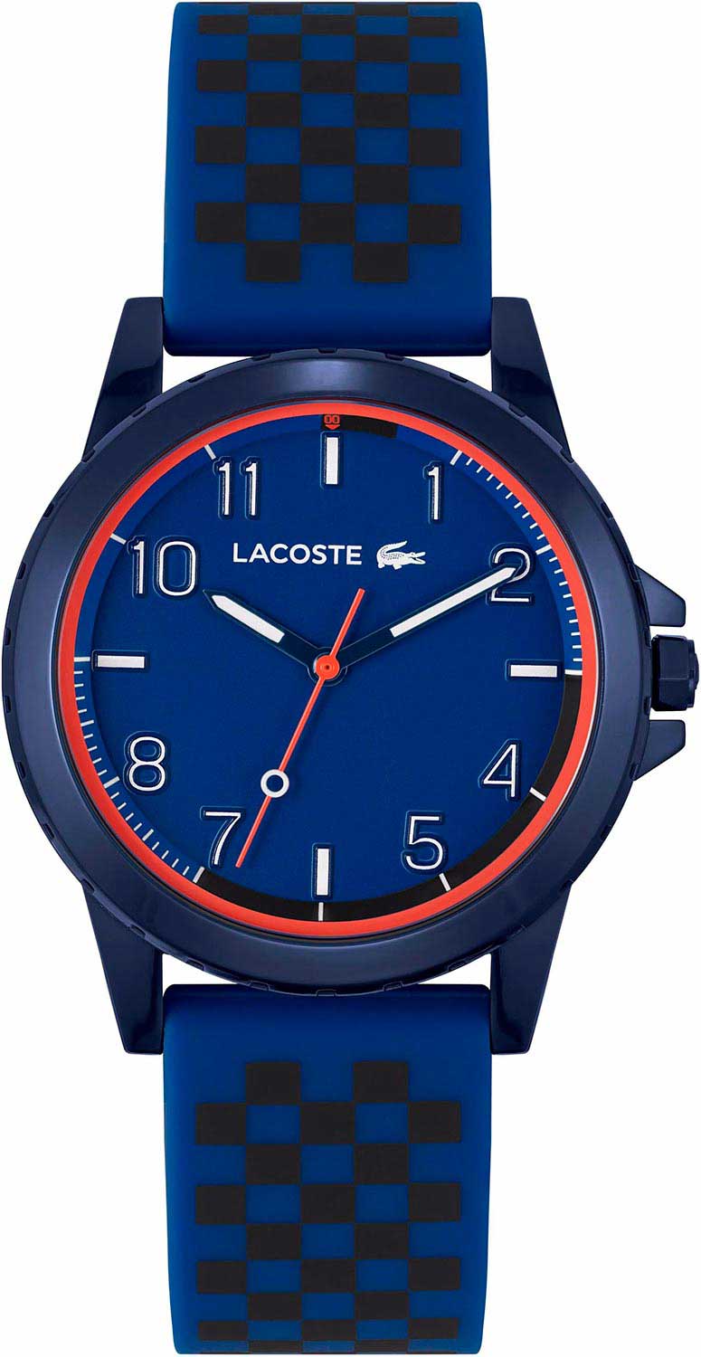 Яркие наручные часы. Круглый пластиковый корпус. Рифленый безель. Циферблат украшен фирменным логотипом. Прямоугольные стрелки в стиле Baton. Накладные метки в виде арабских цифр и штрихов. Метки и стрелки с люминесцентным покрытием, которое светится в темноте после непродолжительной зарядки на свету. Граненая заводная головка с защитой. Завинчивающаяся задняя крышка. Текстурированный силиконовый ремешок с классической застежкой.