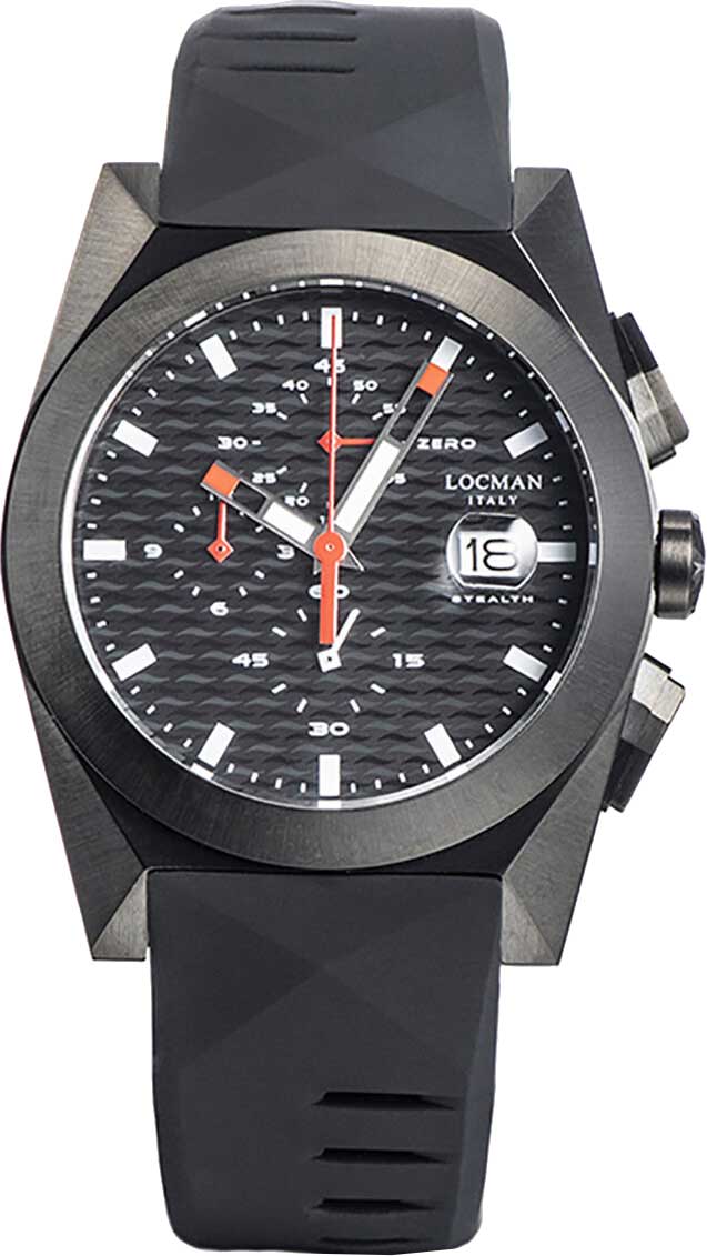 Надежный хронограф будет отлично смотреться на сильном мужском запястье. Stealth. Часы-хронограф с секундомером. Циферблат с метками в виде штрихов. Окошко даты с увеличительным стеклом. Титановая задняя крышка крепится на 4-х винтах. Силиконовый ремешок с классической застежкой.