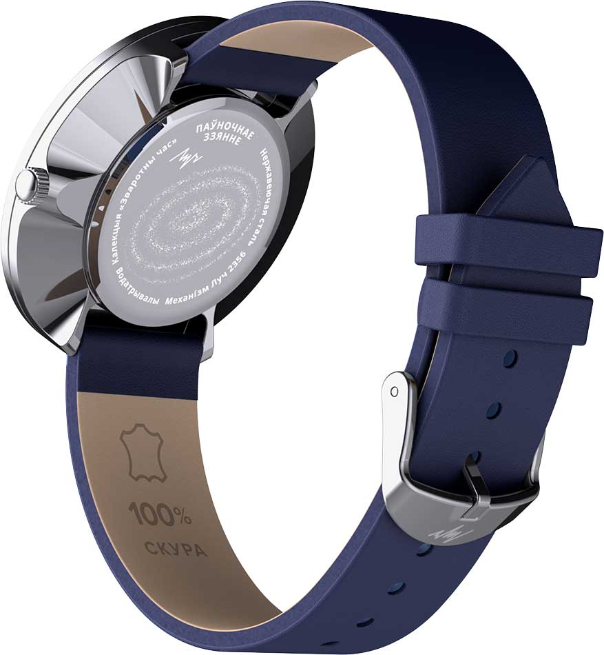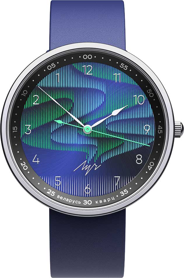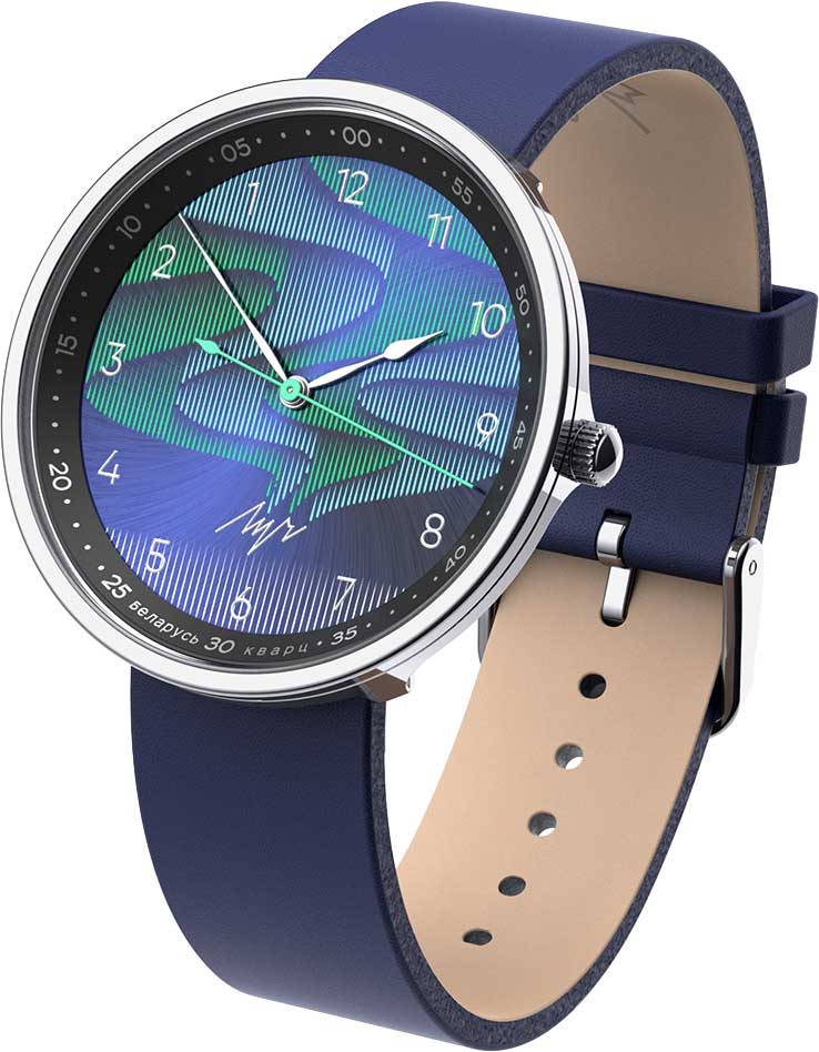 Обратный ход 2.0 Северное сияние. Унисекс часы. Модель с обратным ходом стрелок, создающая эффект возвращения времени вспять. Циферблат с метками в виде арабских цифр. Задняя крышка украшена гравировкой. Ремешок с классической застежкой.