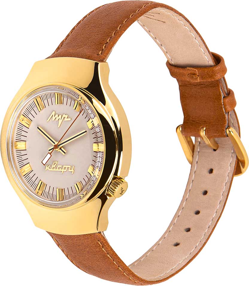 Унисекс часы. Круглый стальной корпус. Циферблат с метками в виде штрихов. Заводная головка с защитой находится в положении 4 часа. Ремешок с классической застежкой.