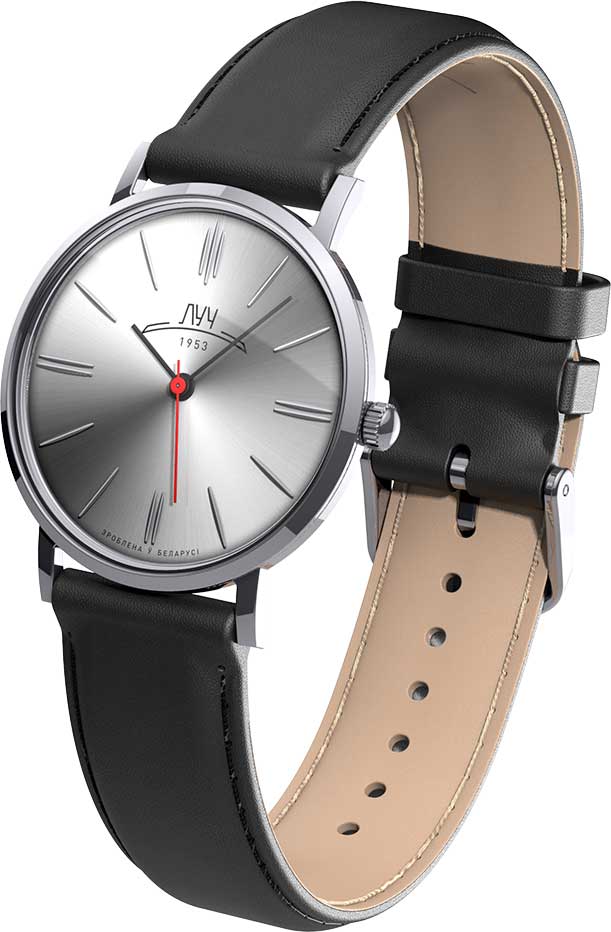 Унисекс часы. Круглый стальной корпус. Циферблат с метками в виде штрихов выполнен по технологии Sunray (солнечные лучи). Ремешок с классической застежкой.