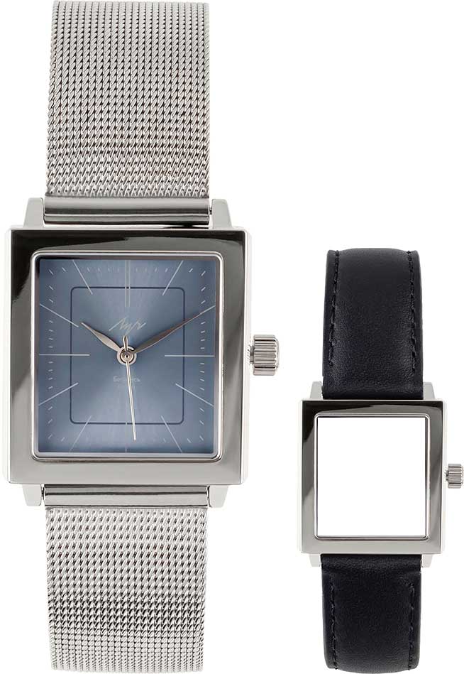 Дуэт. Женские часы с квадратным стальным корпусом. Циферблат выполнен по технологии Sunray (солнечные лучи) и защищен прочным сапфировым стеклом. Метки в виде штрихов. Браслет миланского плетения с регулируемой застежкой и системой быстрой замены. В комплекте сменный кожаный ремешок. Имеется мужской вариант модели 940490692.