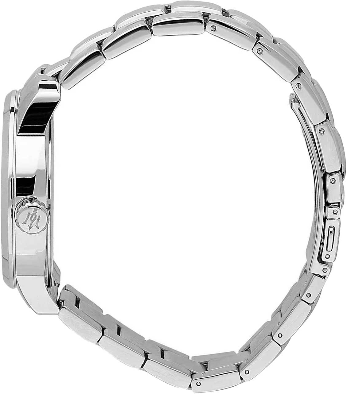 Часы-хронограф с секундомером и тахиметром. 12-ти и 24-х часовой формат времени. Циферблат с метками в виде штрихов выполнен по технологии Sunray (солнечные лучи). Окошко даты находится в положении между отметками 4 и 5 часов. Заводная головка с защитой. Браслет с раскладывающейся застежкой. В комплекте браслет.