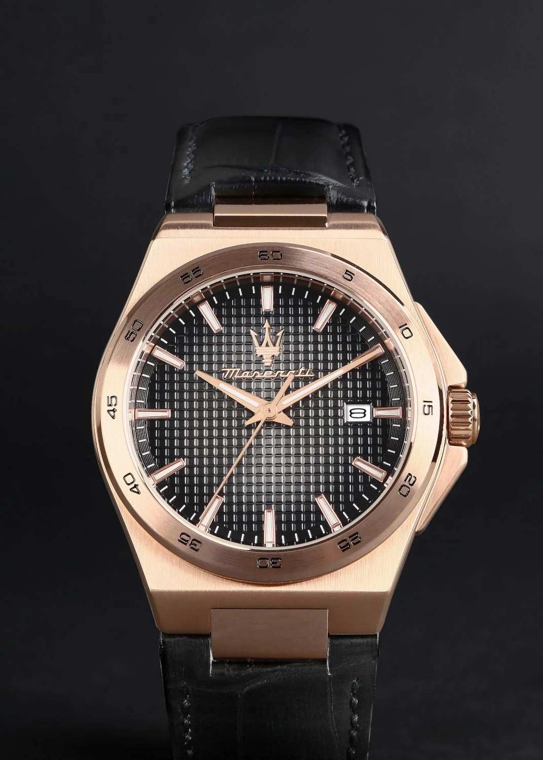 Мужские наручные часы Velocita Slim со стальным корпусом. Циферблат с рисунком в клетку и метками в виде штрихов украшен фирменным логотипом ''Maserati''. Окошко даты находится в положении 3 часа.