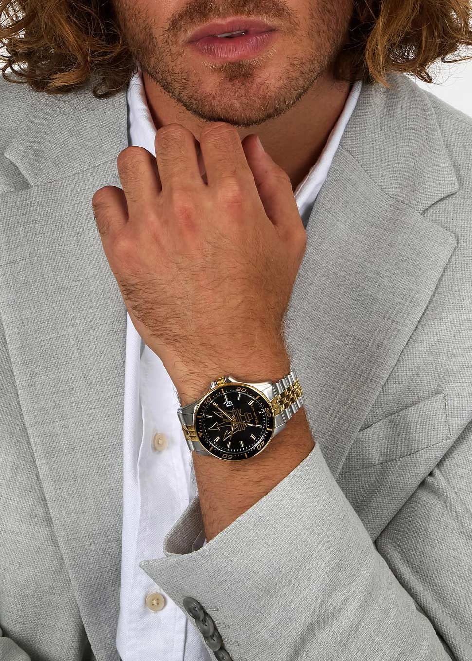 Окошко даты с увеличительным стеклом находится в положении 3 часа. Рифленая заводная головка с защитой. Завинчивающаяся задняя крышка. Браслет с раскладывающейся застежкой.