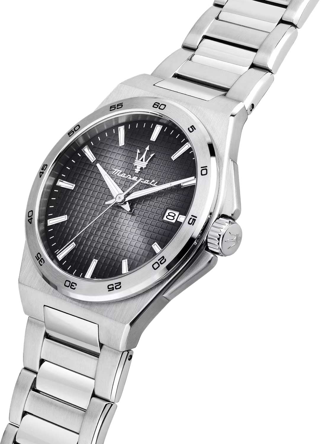 Мужские наручные часы Velocita Slim. Круглый стальной корпус. Безель с минутной шкалой. Циферблат с рисунком в клетку выполнен по технологии Sunray (солнечные лучи) и украшен фирменным логотипом ''Maserati''.