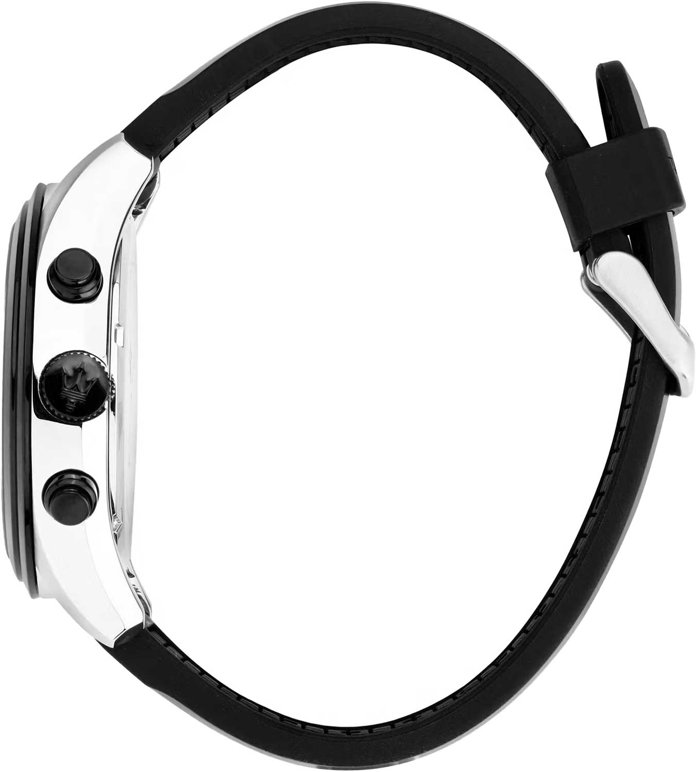 Часы-хронограф с секундомером до 30мин. 12-ти и 24-х часовой формат времени. Циферблат выполнен по технологии Sunray (солнечные лучи) и украшен фирменным логотипом «Maserati». Метки в виде штрихов. Завинчивающаяся задняя крышка и заводная головка. Силиконовый ремешок с классической застежкой.