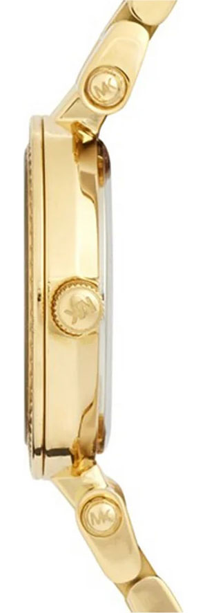 Женские кварцевые часы Darci. Круглый стальной корпус с PVD покрытием цвета желтого золота. Безель декорирован кристальным паве. Циферблат выполнен по технологии Sunray (солнечные лучи) и защищен минеральным стеклом. Метки в виде штрихов. Рифленая заводная головка. Стальной браслет с PVD покрытием цвета желтого золота.