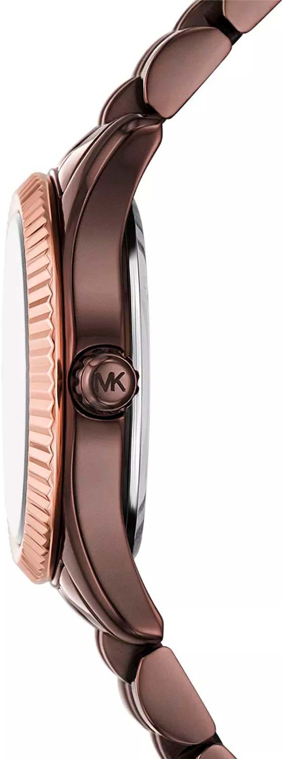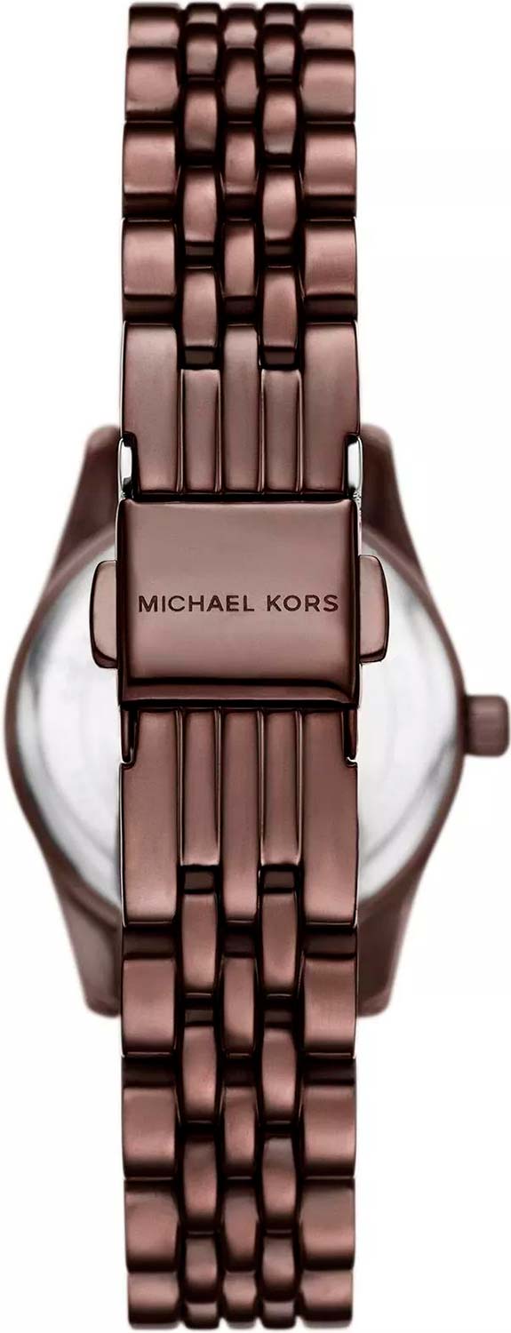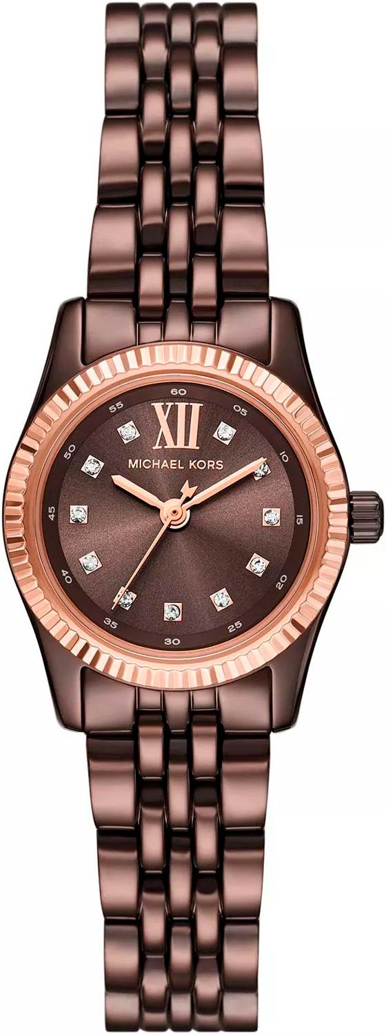 Женские кварцевые часы Lexington. Круглый стальной корпус с PVD покрытием. Рифленый безель. Циферблат выполнен по технологии Sunray (солнечные лучи) и защищен минеральным стеклом. Метки в виде точек, инкрустированных кристаллами, и римской цифры XII. По краю циферблата нанесена минутная шкала. Рифленая заводная головка. Надежный стальной браслет с коричневым PVD покрытием и раскладывающейся застежкой с двумя кнопками.