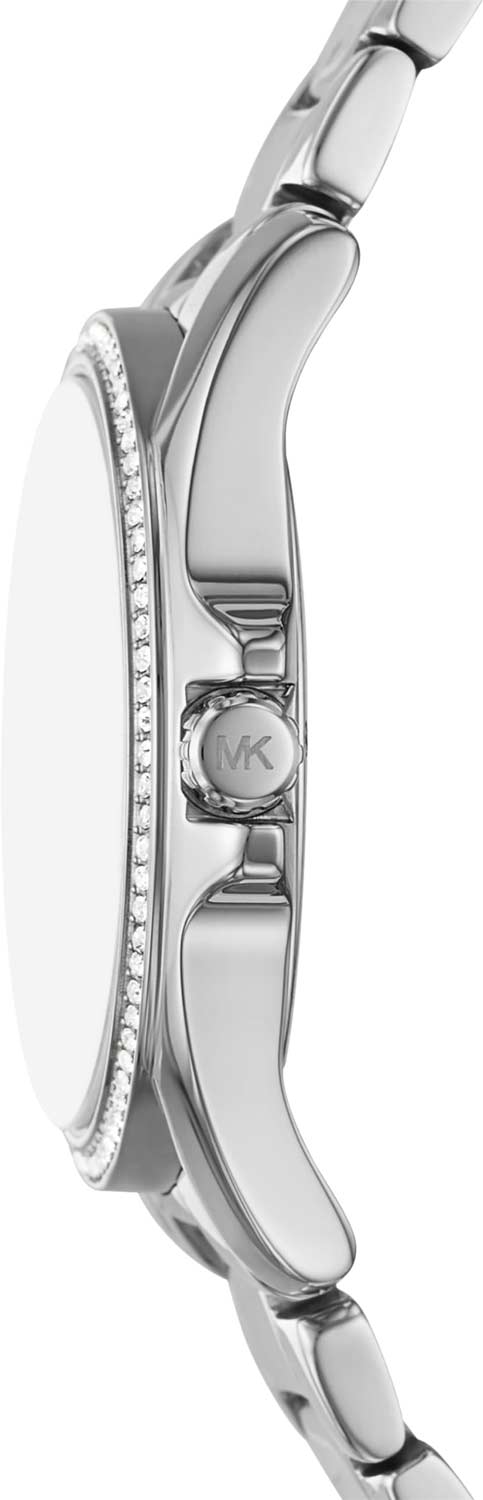 Метки в виде римских цифр. Рифленая заводная головка с защитой. Браслет с раскладывающейся застежкой.