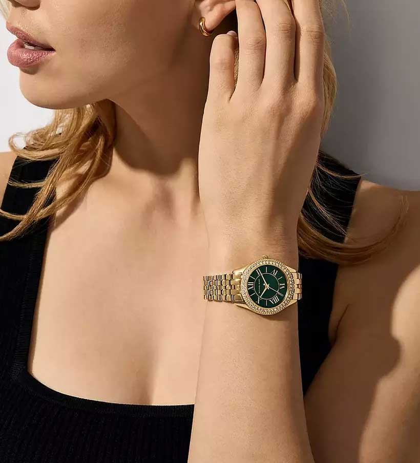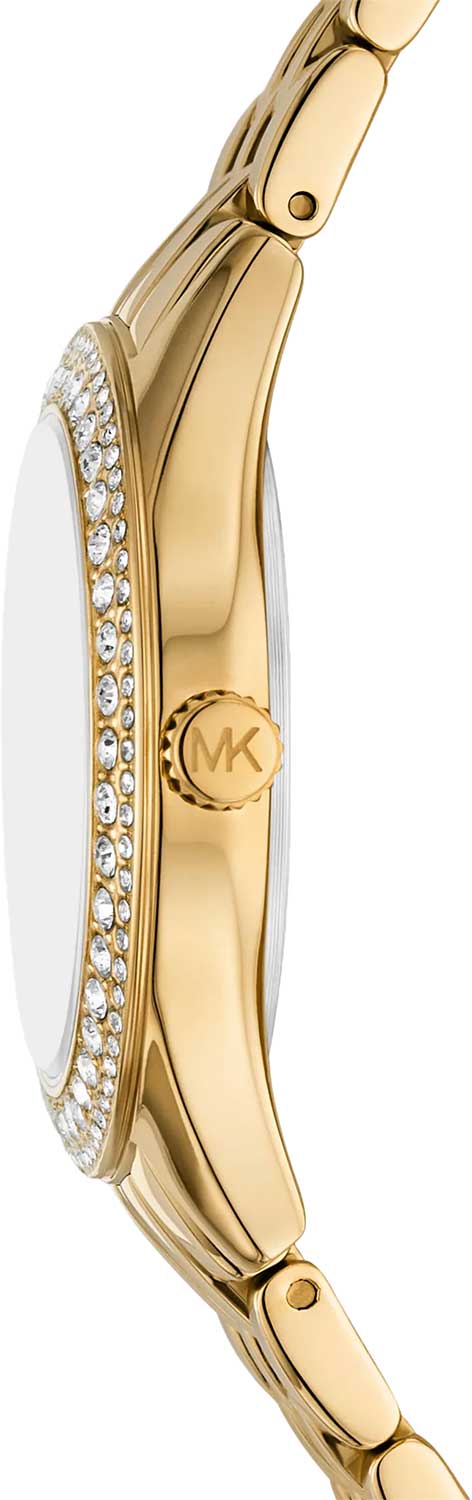 Женские кварцевые часы Mini Harlowe. Перламутровый циферблат защищен минеральным стеклом. Метки в виде римских цифр и штрихов. Безель декорирован паве из кристаллов. Рифленая заводная головка. Стальной браслет с раскладывающейся застежкой.
