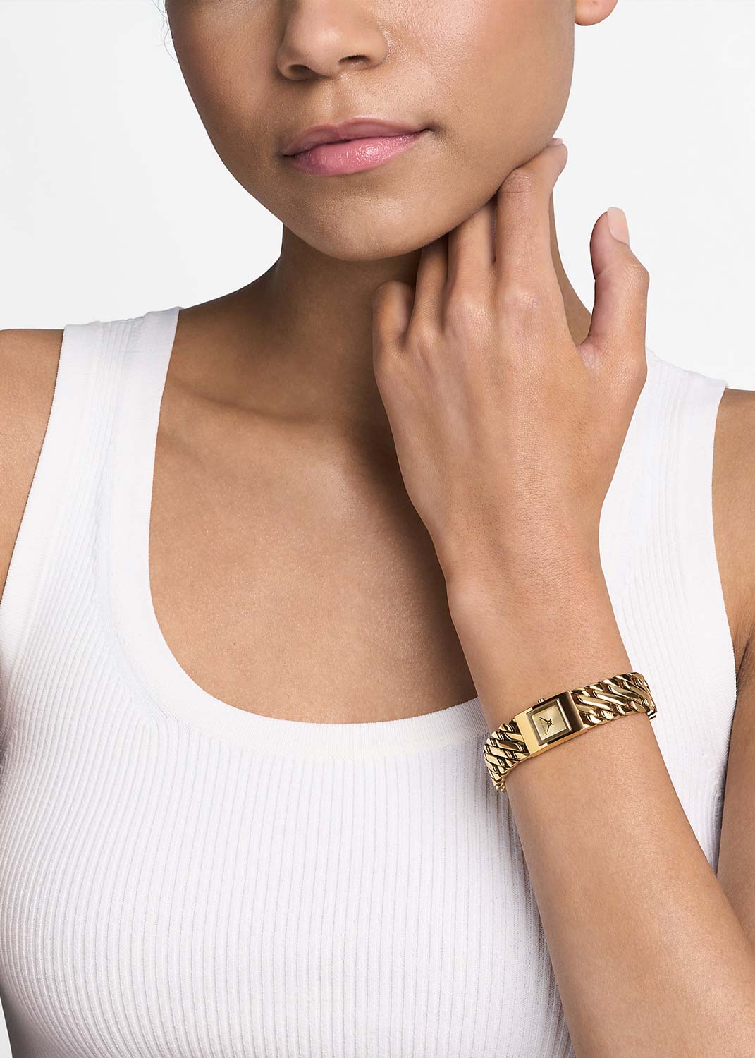 Женские часы Darrington. Стальной прямоугольный корпус. Циферблат без меток с фирменной надписью Michael Kors, защищенный минеральным стеклом. Гладкая заводная головка с монограммой MK. Надежный стальной браслет.