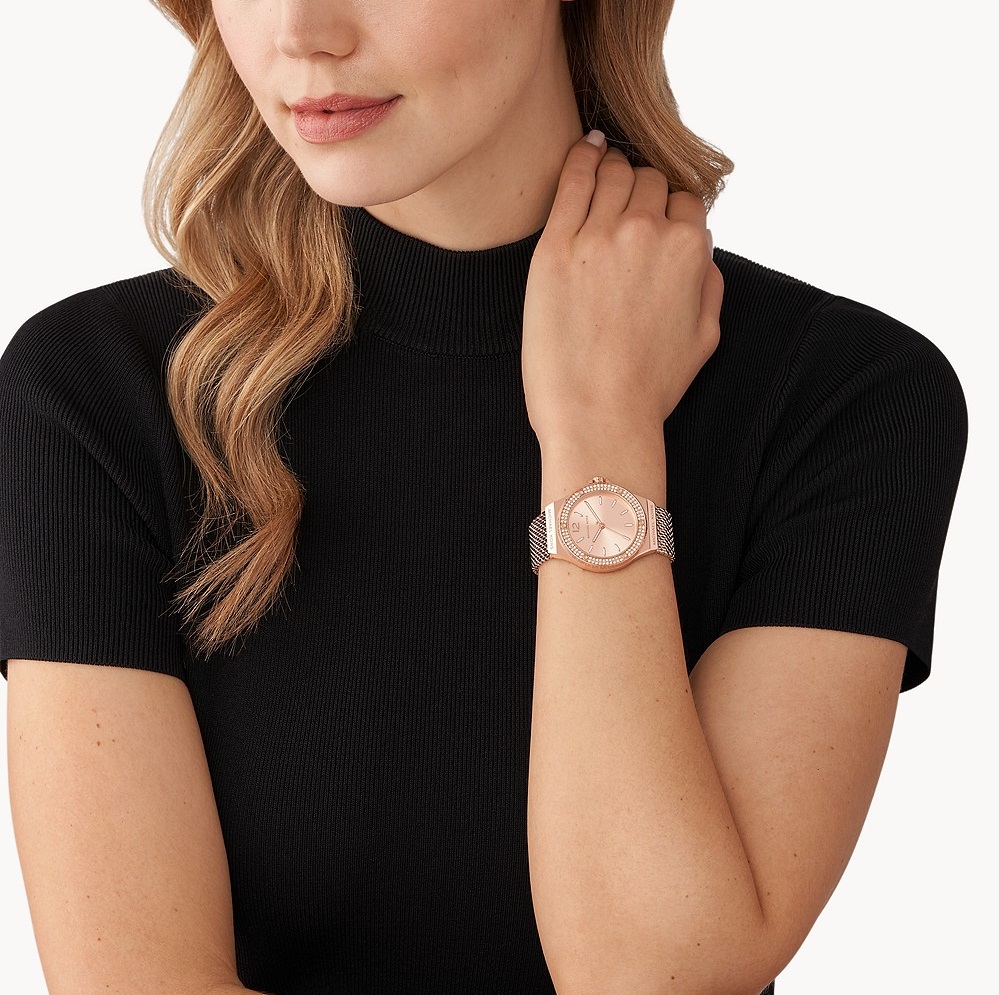 Ослепительные часики подчеркнут вашу индивидуальность и привлекут внимание окружающих. Lennox. Женские часы с круглым стальным корпусом. Циферблат выполнен по технологии Sunray (солнечные лучи). Метки в виде штрихов. Безель украшен множеством кристаллов. Рифленая заводная головка с защитой. Миланский браслет.