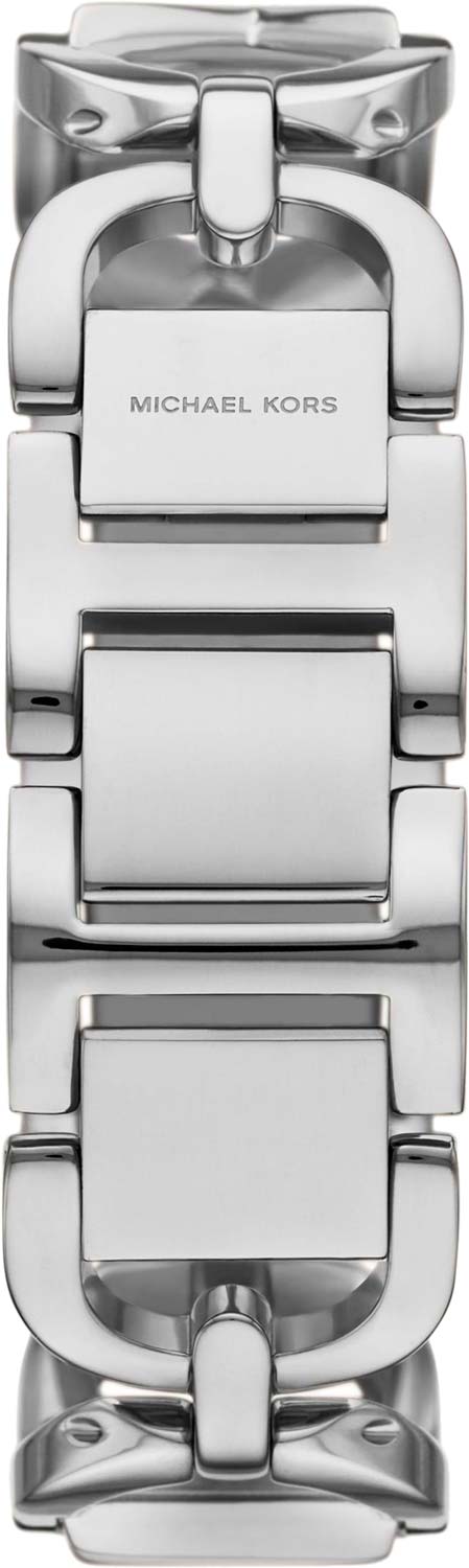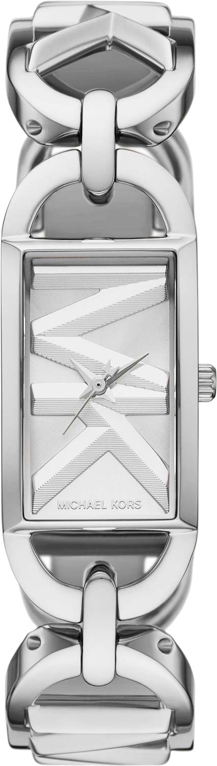Этот элегантный аксессуар, выполненный в стиле ар-деко, придаст вашему образу женственности и элегантности. Женские часы с прямоугольным стальным корпусом Mini Empire. Циферблат с логотипом бренда выполнен по технологии Sunray (солнечные лучи). Рифленая заводная головка. Стальной браслет с буквами MK.