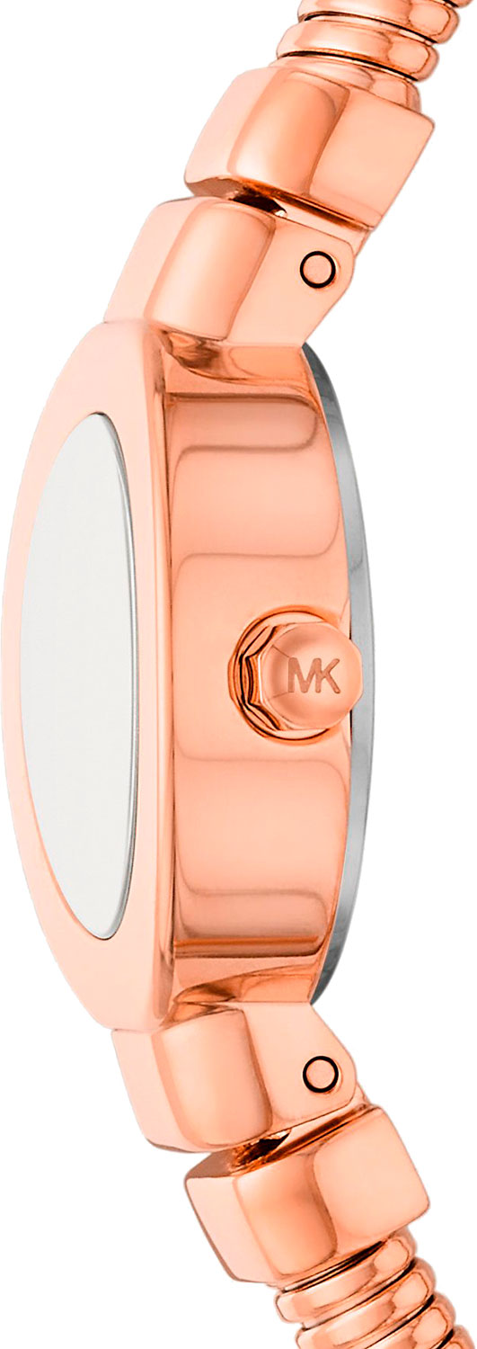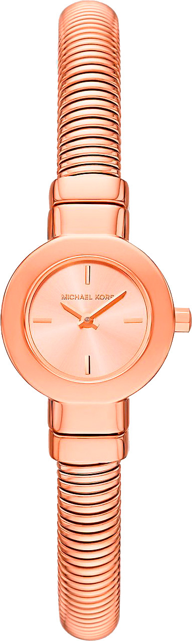 Женские кварцевые часы Mini Gramercy в круглом стальном корпусе цвета розового золота. Розовый циферблат с метками в виде штрихов выполнен по технологии Sunray (солнечные лучи). Секундная стрелка отсутствует. Стальной браслет цвета розового золота с ювелирной застежкой.