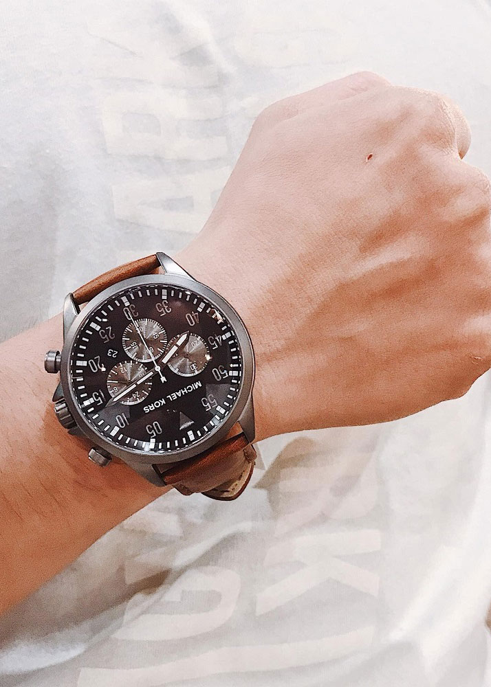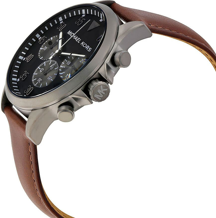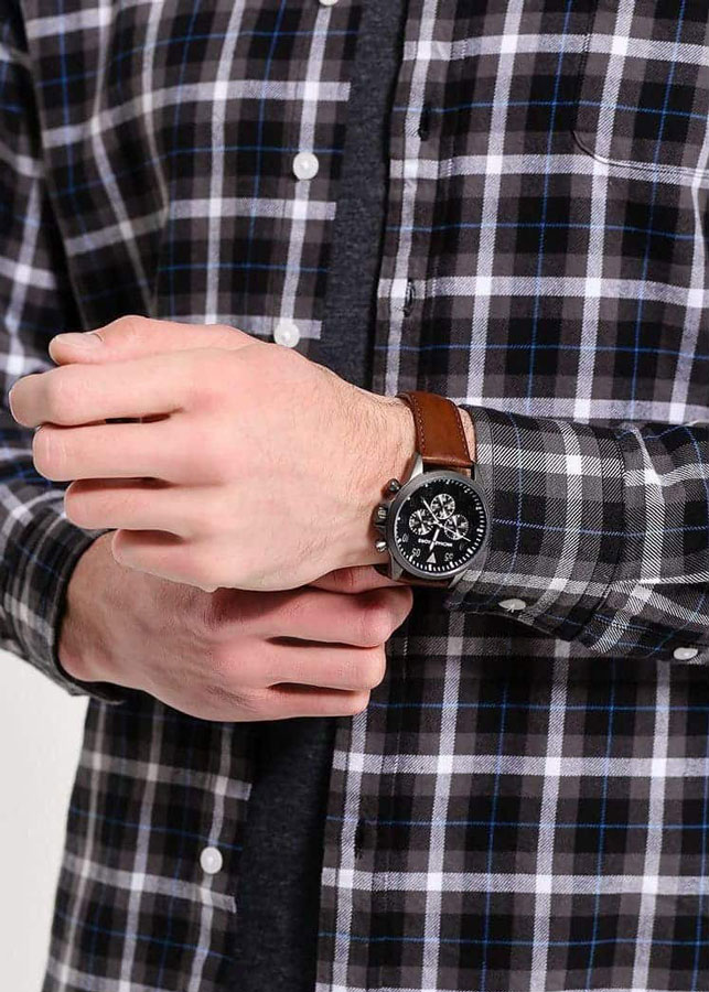 Мужские часы-хронограф Gage с секундомером. 12-ти и 24-х часовой формат времени. Круглый стальной корпус. Люминесцентные стрелки и метки, которые светятся в темноте после непродолжительной зарядки на свету. Окошко даты находится между отметками 4 и 5 часов. Заводная головка с защитой. Кожаный ремешок с классической застежкой.