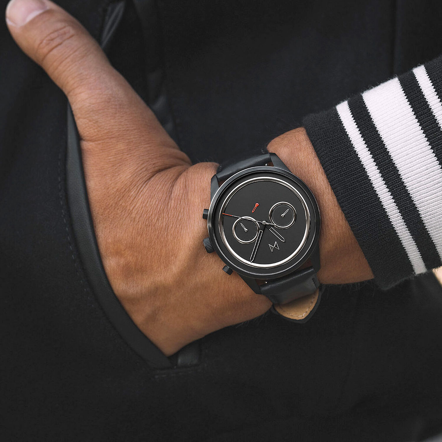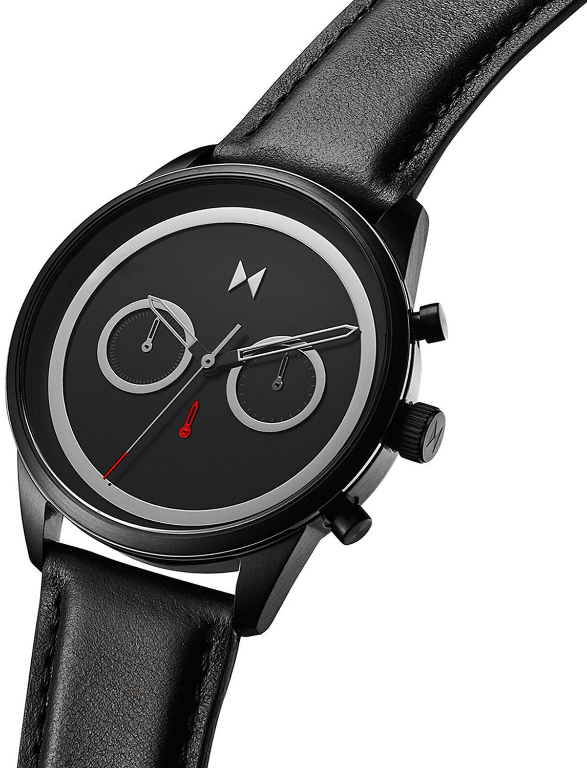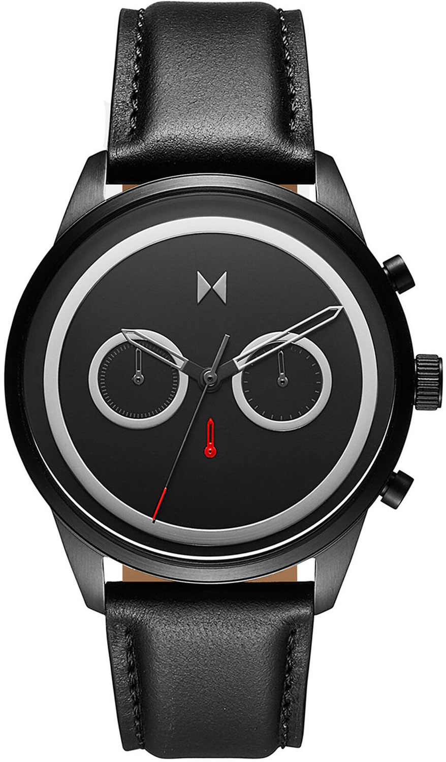 Надежные кварцевые часы в восхитительном дизайне из плавных линий с минимумом деталей - идеальны для современного ритма жизни. Diablo. Мужские часы-хронограф с секундомером. 12-ти и 24-х часовой формат времени. Круглый корпус часов изготовлен из нержавеющей стали. Циферблат защищен закаленным минеральным стеклом, украшен контрастными кругами без часовых и минутных меток и фирменным логотипом MVMT в положении 12 часов. Заостренные прямоугольные стрелки с частично удаленным металлом для лучшей читабельности дополнительных циферблатов. Рифленая заводная головка и застежка украшены фирменным логотипом. Завинчивающаяся задняя крышка. Удобный кожаный ремешок с классической застежкой.