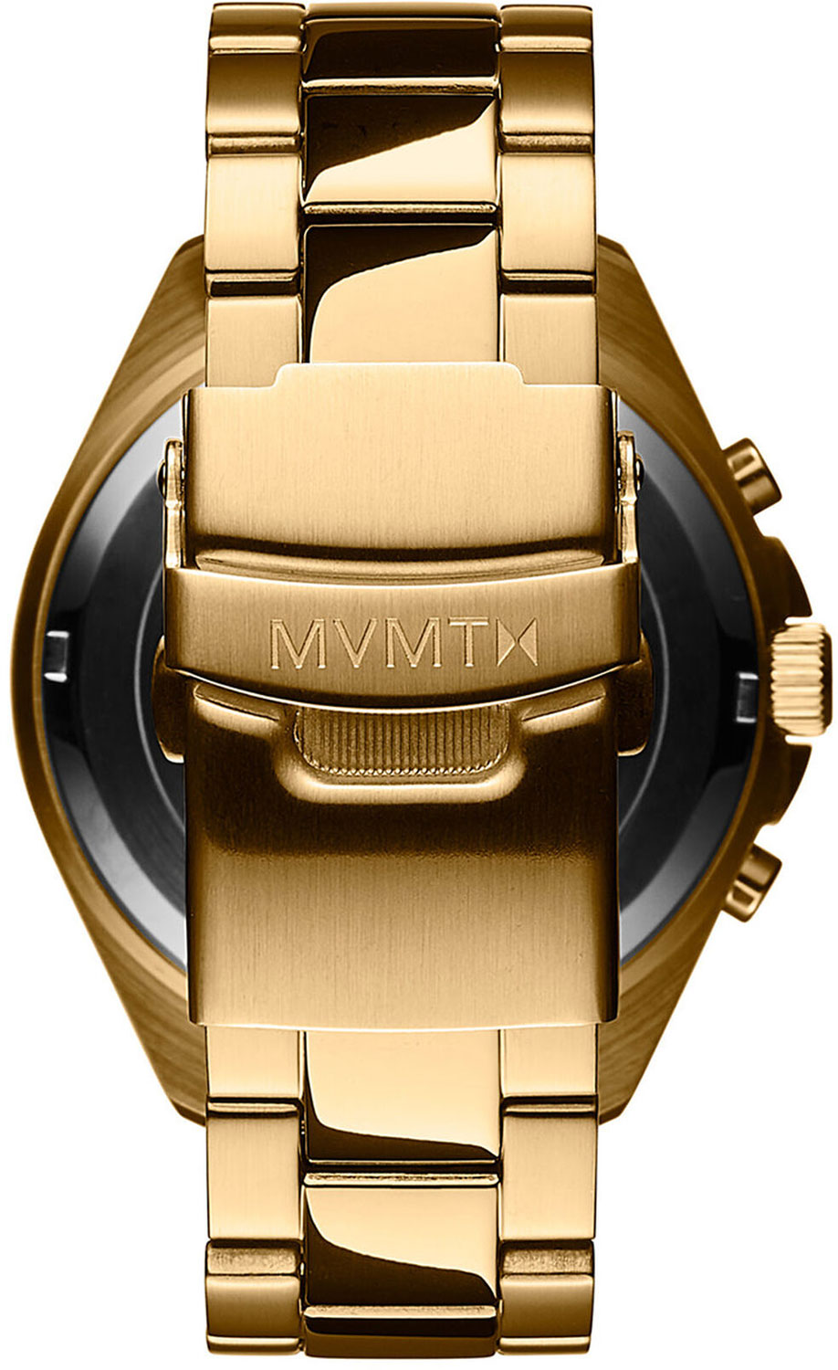Стильный и элегантный хронограф с привлекательным дизайном и водонепроницаемым корпусом по достоинству дополнит ваш образ. Maya. Женские часы-хронограф с секундомером. 12-ти и 24-х часовой формат времени. Круглый корпус часов изготовлен из нержавеющей стали. Безель декорирован внешним стальным кольцом с насечками. Циферблат защищен закаленным минеральным стеклом и украшен радиальным брашированием поверхности. Заостренные прямоугольные стрелки. Метки в виде штрихов, 12-ти часовая метка в виде фирменного логотипа MVMT. Рифленая заводная головка с защитой и застежка украшены фирменным логотипом. Завинчивающаяся задняя крышка. Надежный стальной браслет с раскладывающейся застежкой. Застежка с системой блокировки.