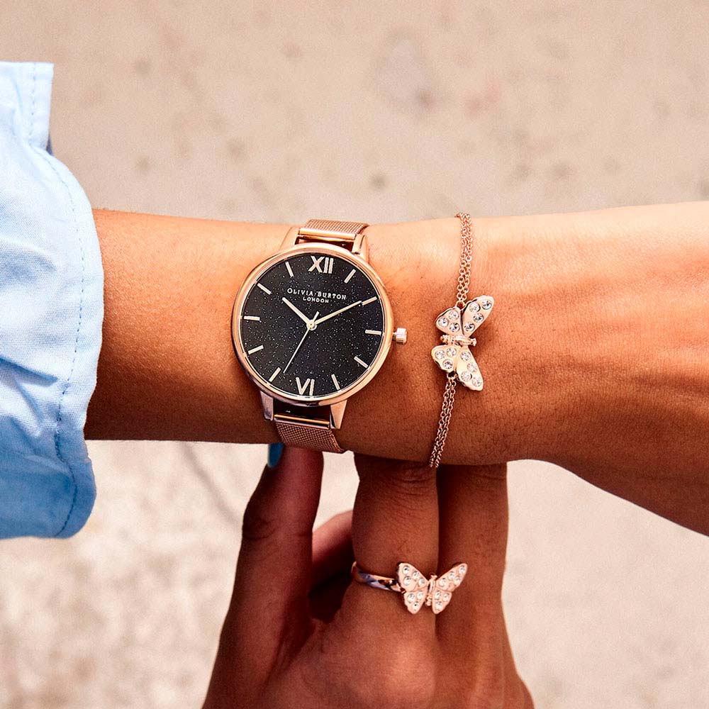 Роскошное сочетание цветов, усиленное невероятным блеском, демонстрирует, что владелица аксессуара - яркая личность с превосходным чувством стиля. Женские часы. Круглый стальной корпус. Блестящий циферблат с метками в виде штрихов и римских цифр VI и XII. Рифленая заводная головка. Браслет миланского плетения.