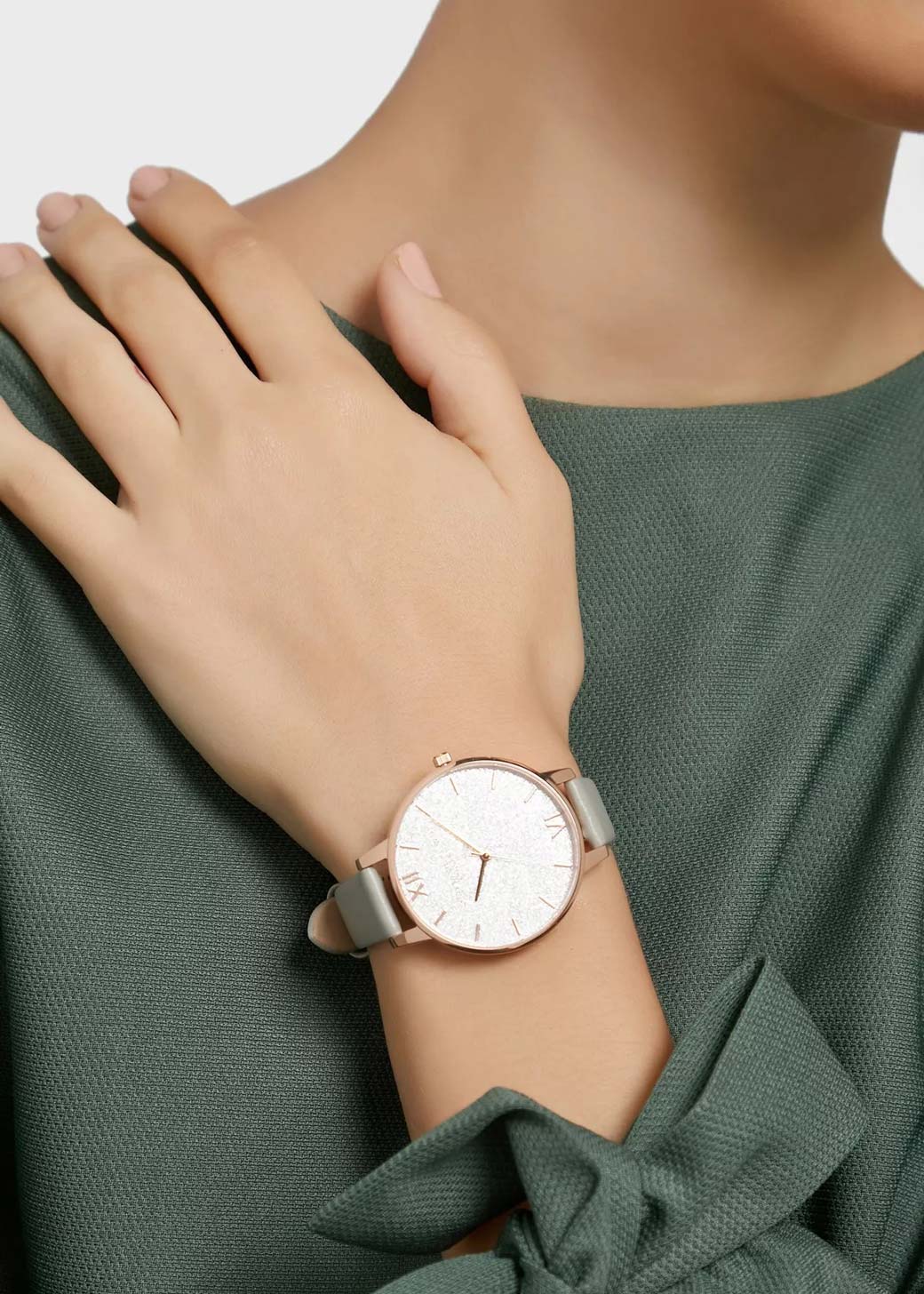 Выбранное цветовое решение, стильный дизайн и исключительная элегантность - аксессуар для тех, кто ищет что-то новое. Женские часы. Круглый стальной корпус. Блестящий циферблат с метками в виде штрихов и римских цифр VI и XII. Рифленая заводная головка. Ремешок с классической застежкой.