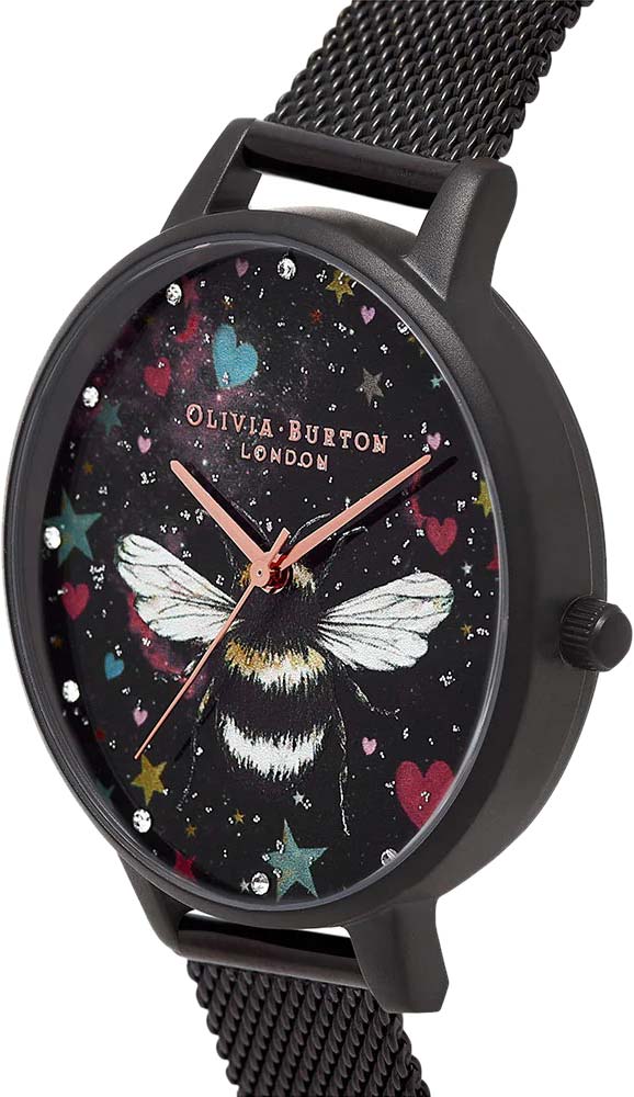 Откройте для себя таинственную красоту ночного сада, в котором начинается своя загадочная жизнь, когда садится солнце. Night Garden. Женские часы. Круглый стальной корпус. Циферблат с метками в виде точек с кристаллами. Рифленая заводная головка. Браслет миланского плетения.