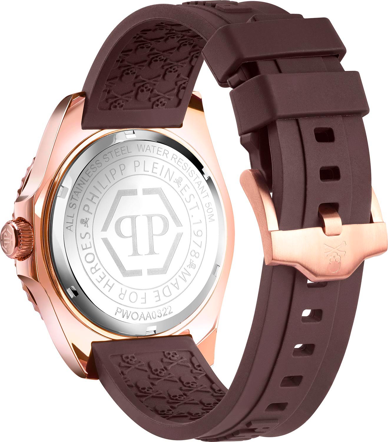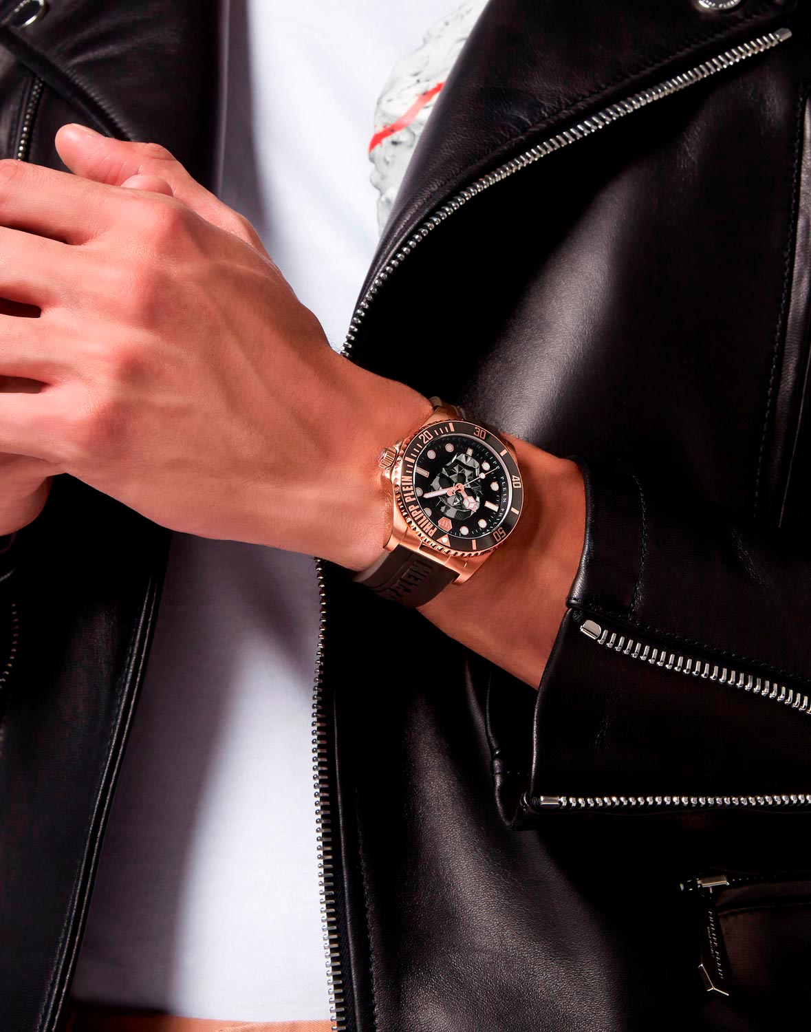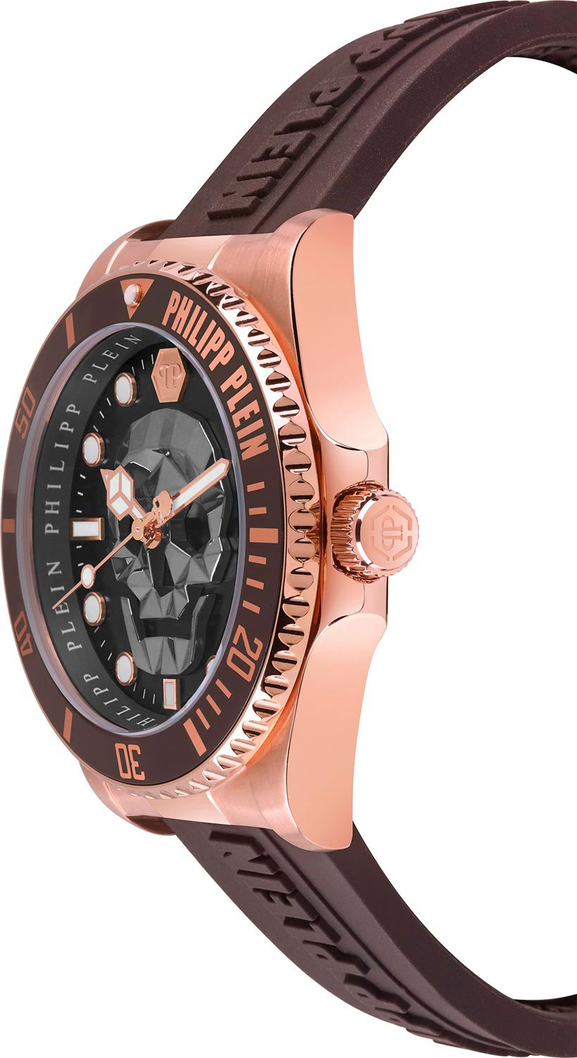 Быть стильным легко, когда ваше запястье украшают эти практичные часы от Philipp Plein. Идеальный выбор для тех, чья жизнь полна энергии и движения. Дайверские мужские часы The Skull Diver с круглым стальным корпусом. Циферблат с метками в виде штрихов и точек украшен трехмерным граненым черепом и логотипом ''PP'' в положении 12 часов. Заводная головка с защитой. Силиконовый ремешок украшен тиснением логотипа Philipp Plein. Классическая застежка украшена черепом. Фирменная дизайнерская упаковка.
