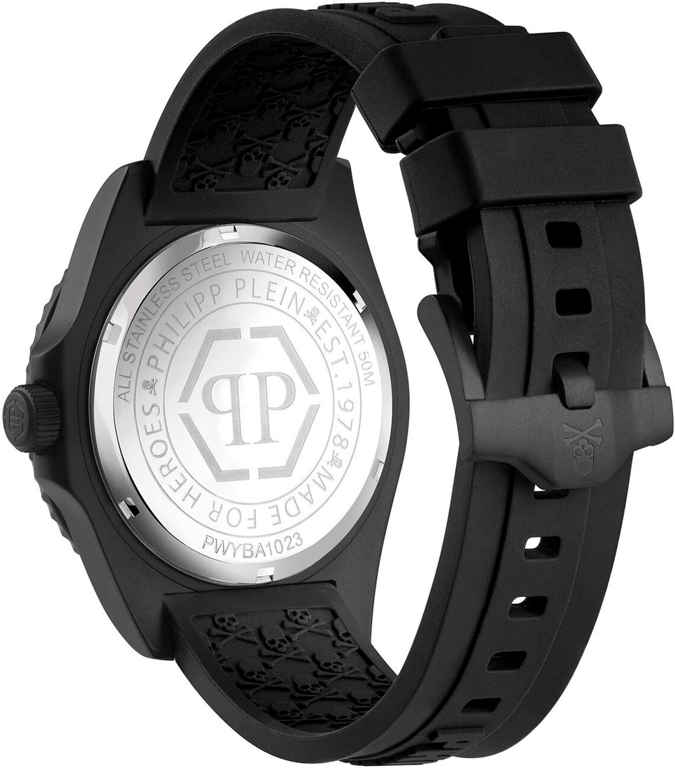 Быть стильным легко, когда ваше запястье украшают эти практичные часы от Philipp Plein. Идеальный выбор для тех, чья жизнь полна энергии и движения. Мужские часы с круглым стальным корпусом. Циферблат украшен сотовым декоративным узором с паттерном в виде фирменного логотипа. Метки в виде точек и штрихов. Окошко даты с увеличительным стеклом находится в положении 3 часа. Рифленая заводная головка с защитой. Удобный силиконовый ремешок с классической застежкой.