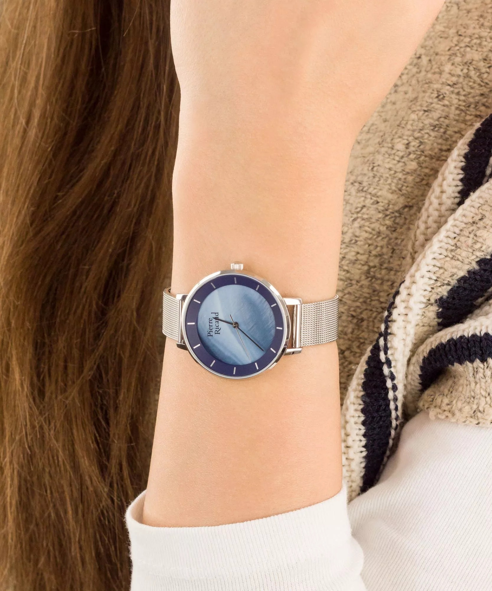 Стильные часы в классическом дизайне. Их обладательница никогда не теряет время зря. Bracelet. Кварцевые часы в круглом стальном корпусе. Перламутровый циферблат с метками в виде штрихов. Браслет миланского плетения.