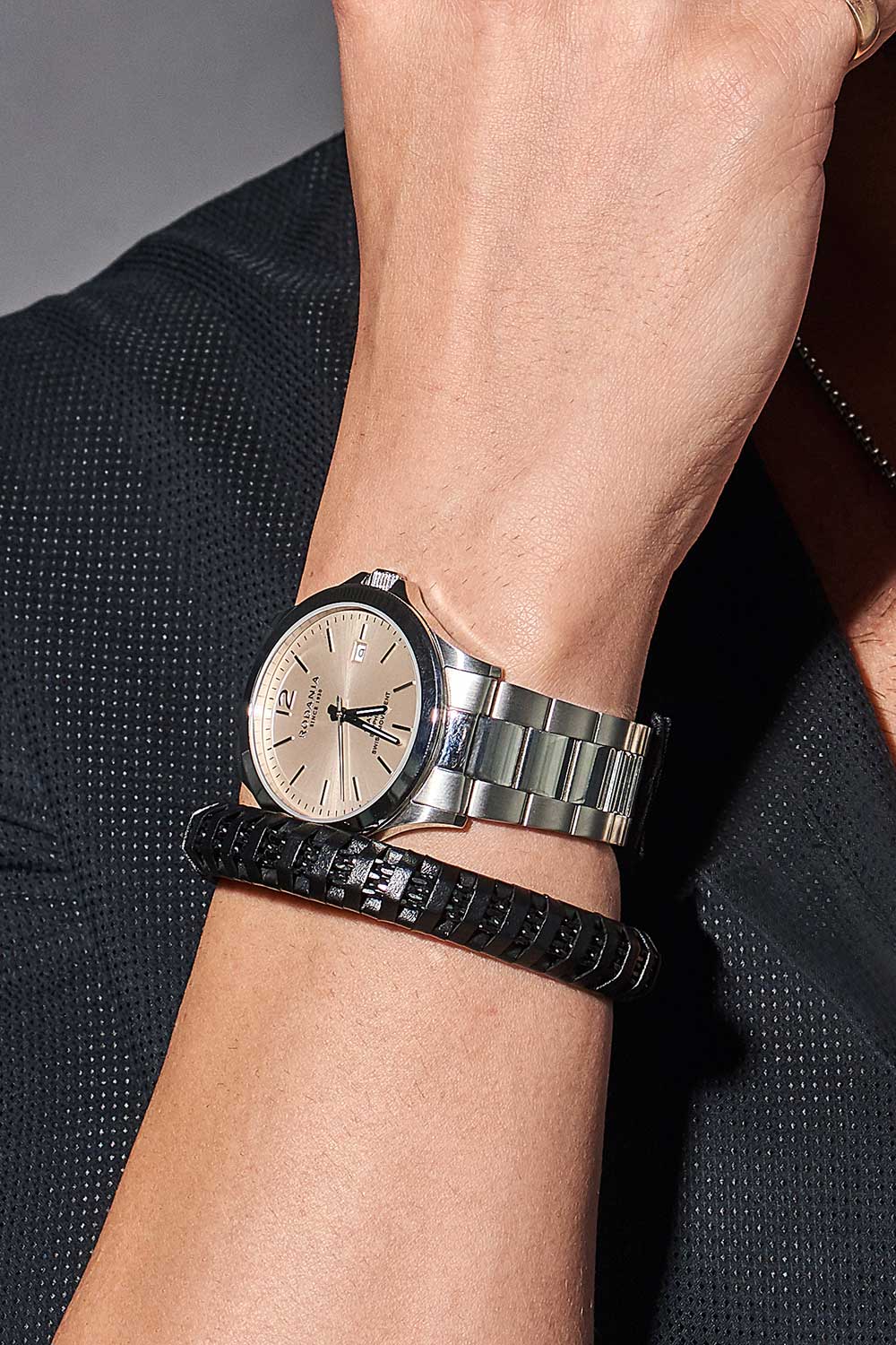 Идеальные мужские часы, которые сочетают в себе элегантность и знаменитое швейцарское качество. Verbier. Циферблат выполнен по технологии Sunray (солнечные лучи) и защищен прочным сапфировым стеклом. Метки в виде штрихов. Окошко даты. Завинчивающаяся заводная головка с защитой. Браслет с раскладывающейся застежкой.