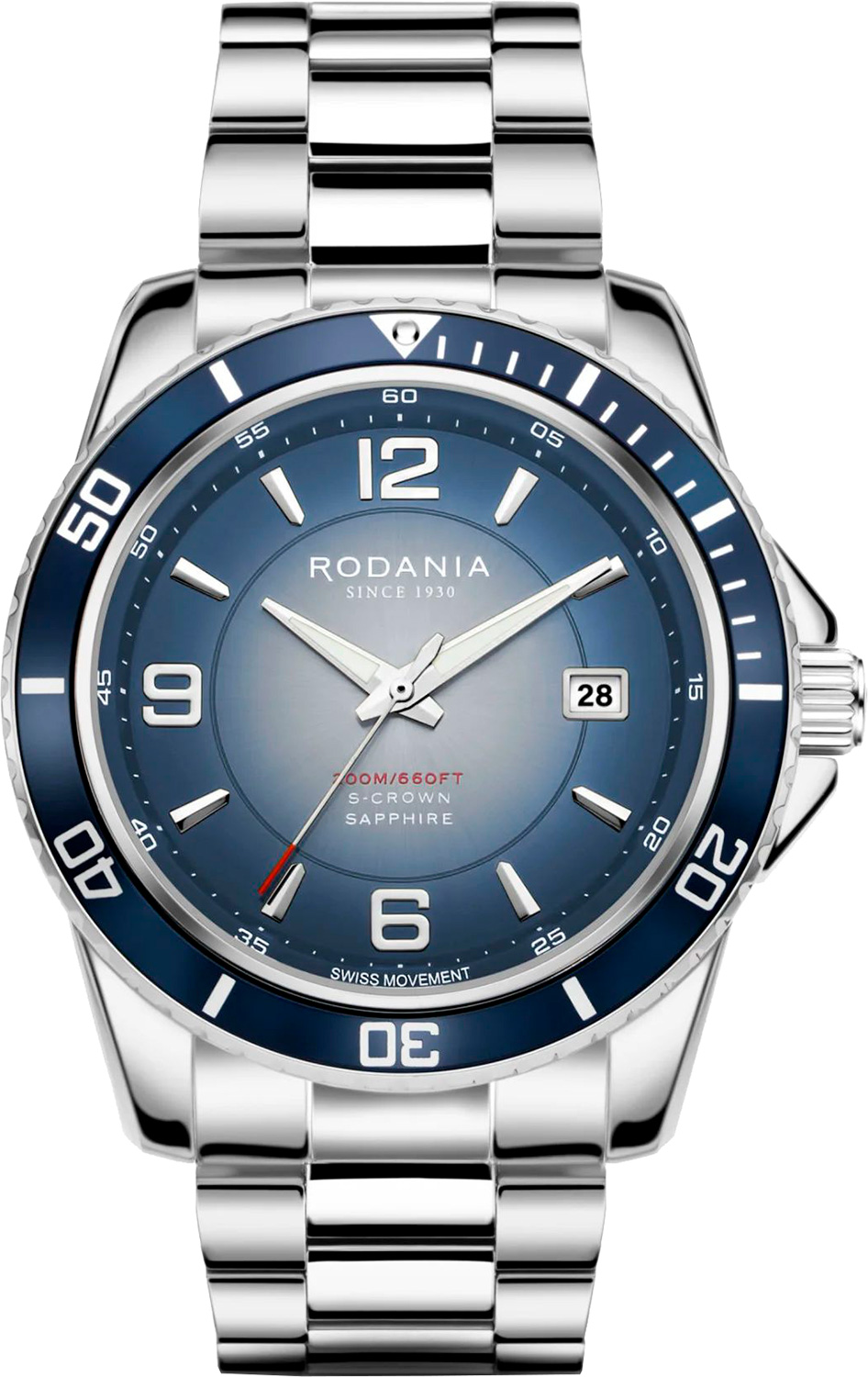 Надежные и стильные часы - идеальный аксессуар для повседневного использования. Мужские часы. Круглый стальной корпус. Циферблат защищен прочным сапфировым стеклом. Метки в виде штрихов и арабских цифр. Вращающийся безель. Стрелки с люминесцентным покрытием, которое светится в темноте после непродолжительной зарядки на свету. Окошко даты находится в положении 3 часа. Заводная головка с защитой. Браслет с раскладывающейся застежкой.
