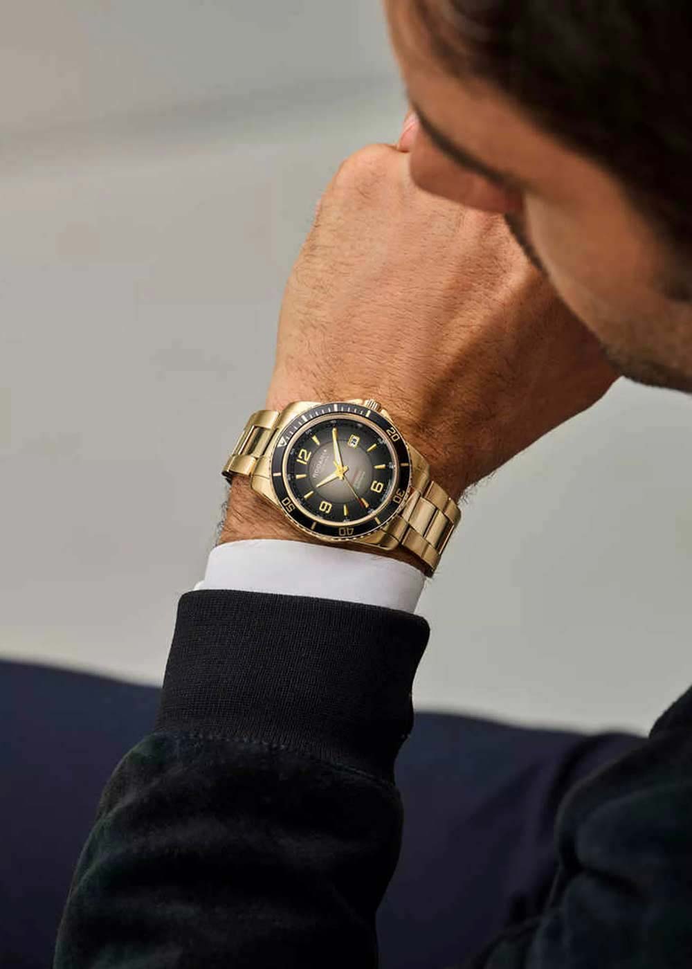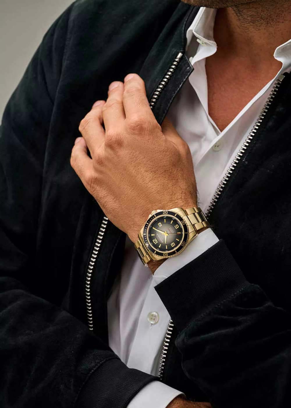 Надежные и стильные часы - идеальный аксессуар для повседневного использования. Мужские часы. Круглый стальной корпус. Циферблат защищен прочным сапфировым стеклом. Метки в виде штрихов и арабских цифр. Вращающийся безель. Стрелки с люминесцентным покрытием, которое светится в темноте после непродолжительной зарядки на свету. Окошко даты находится в положении 3 часа. Заводная головка с защитой. Браслет с раскладывающейся застежкой.