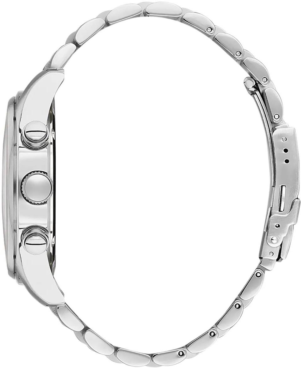 Элегантные мужские часы в стильном функциональном дизайне станут верным выбором на каждый день. Наручные мужские часы. Круглый стальной корпус с полированной отделкой. Циферблат выполнен по технологии Sunray (солнечные лучи) и украшен фирменным логотипом. Метки в виде арабских цифр. 12-ти и 24-х часовой формат времени. Второй часовой пояс в 24-х часовом формате. Все дополнительные функции вынесены на отдельные циферблаты. Окошко даты находится в положении 4 часа. Заостренные стрелки с люминесцентным покрытием, которое светится в темноте после непродолжительной зарядки на свету. Рифленая заводная головка. Надежный стальной браслет с раскладывающейся застежкой.