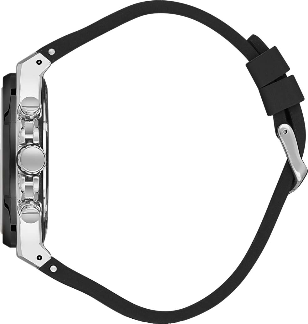 Циферблат с накладными метками в виде штрихов выполнен по технологии Sunray (солнечные лучи) и украшен фирменным логотипом. Стрелки и метки с люминесцентным покрытием, которое светится в темноте после непродолжительной зарядки на свету. Рифленая заводная головка. Силиконовый ремешок с классической застежкой.