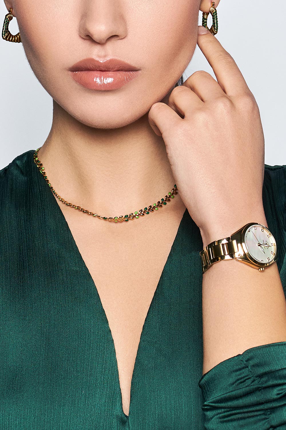 Изысканный дизайн, очарование перламутра и интригующий блеск кристаллов подчеркнут ваши стиль и утонченность. Женские наручные часы. Круглый корпус. Перламутровый циферблат с метками в виде точек, украшенных кристаллами Swarovski. Стрелки с люминесцентным покрытием, которое светится в темноте после непродолжительной зарядки на свету. Рифленая заводная головка. Стальной браслет с раскладывающейся застежкой.