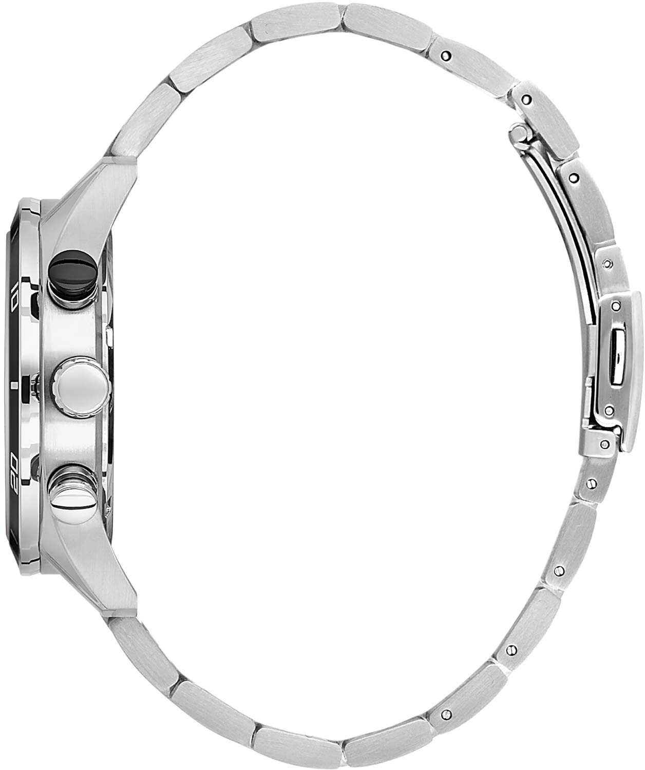 Многофункциональные мужские наручные часы. Круглый стальной корпус. Безель с минутной шкалой. 12-ти и 24-х часовой формат времени. Второй часовой пояс в 24-х часовом формате времени. Второй часовой пояс и день недели вынесены на отдельные циферблаты. Окошко даты находится между отметками 4 и 5 часов. Циферблат с накладными метками в виде штрихов выполнен по технологии Sunray (солнечные лучи) и украшен фирменным логотипом. Стрелки и метки с люминесцентным покрытием, которое светится в темноте после непродолжительной зарядки на свету. Рифленая заводная головка. Стальной браслет с раскладывающейся застежкой.
