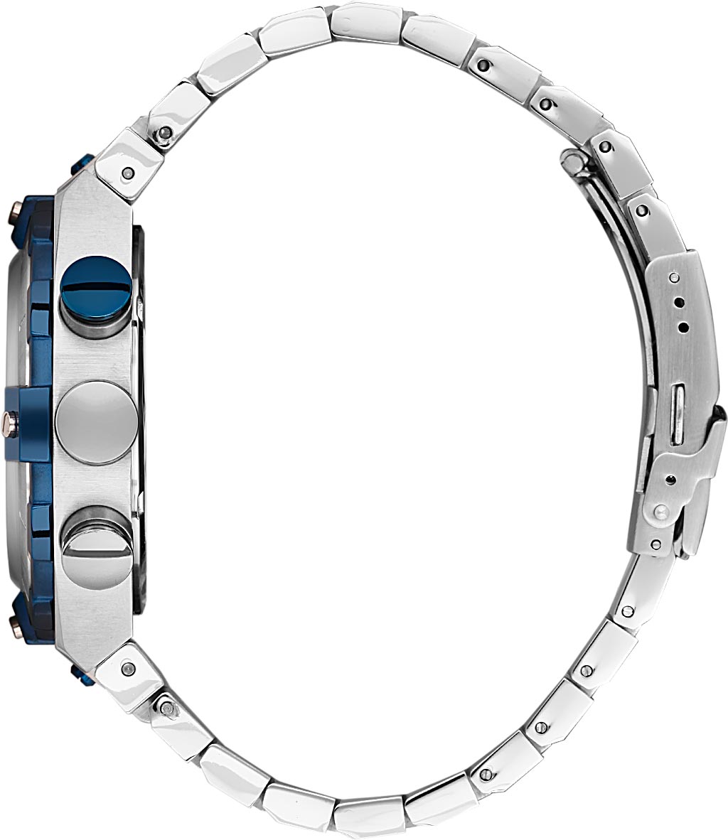 Эти стильные многофункциональные часы станут отражением вашего активного образа жизни, полного впечатлений и событий. Массивные наручные часы. Круглый стальной корпус с матовой отделкой. Циферблат выполнен по технологии Sunray (солнечные лучи) и украшен фирменным логотипом. 12-ти и 24-х часовой формат времени, второй часовой пояс и день недели отображаются на отдельных циферблатах. Накладные метки в виде штрихов. Окошко даты находится между отметками 4 и 5 часов. Стрелки и метки с люминесцентным покрытием, которое светится в темноте после непродолжительной зарядки на свету. Надежный стальной браслет с раскладывающейся застежкой.