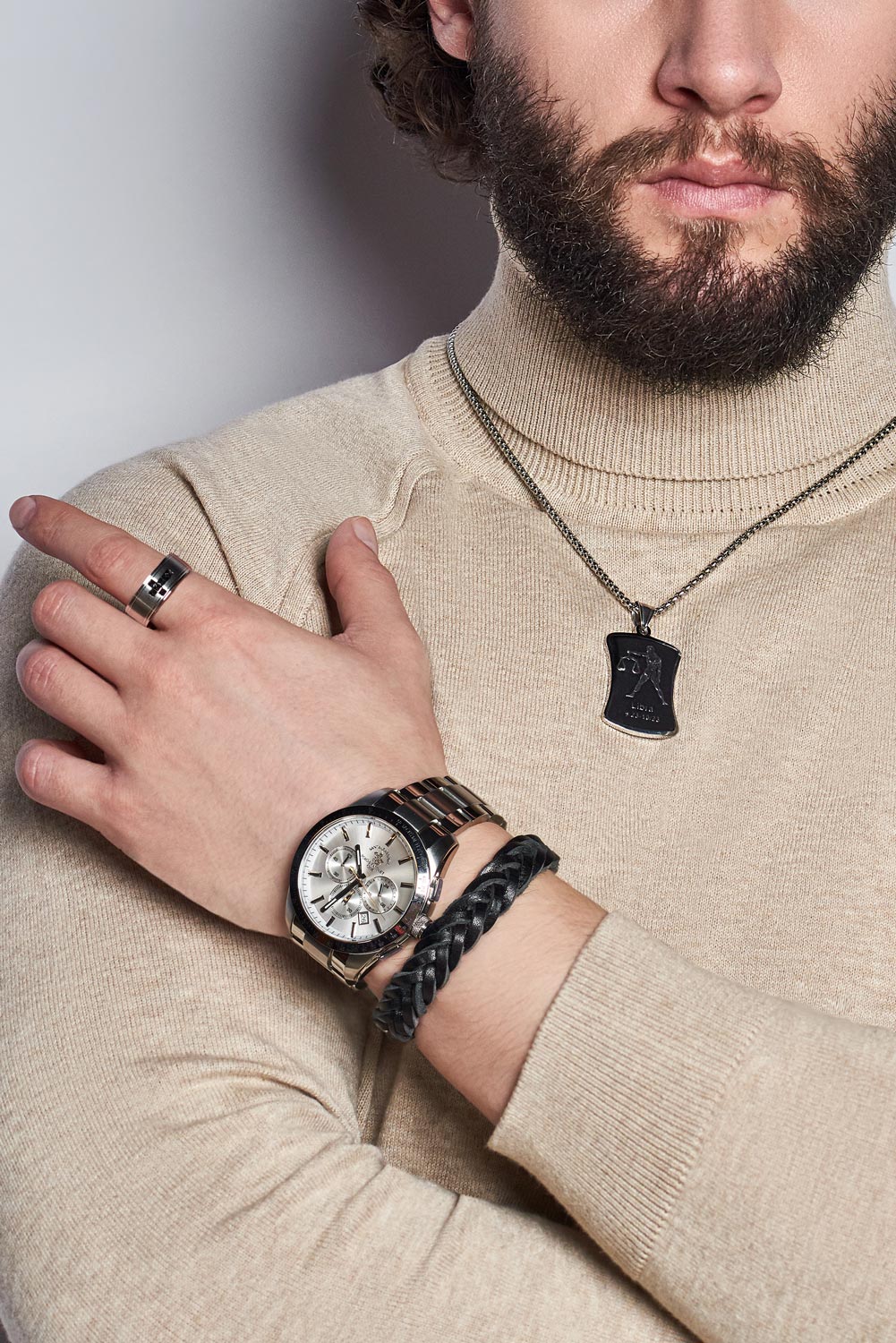 Эти наручные мужские часы позволяют их владельцу выглядеть не просто стильно, но еще и с неким элементом драйва. Мужские наручные часы-хронограф с секундомером и тахиметром. Круглый стальной корпус. 12-ти и 24-х часовой формат времени. Циферблат выполнен по технологии Sunray (солнечные лучи) с накладными метками в виде штрихов и украшен фирменным логотипом. Окошко даты находится между отметками 4 и 5 часов. Стрелки и метки с люминесцентным покрытием, которое светится в темноте после непродолжительной зарядки на свету. Рифленая заводная головка с защитой. Стальной браслет с раскладывающейся застежкой.
