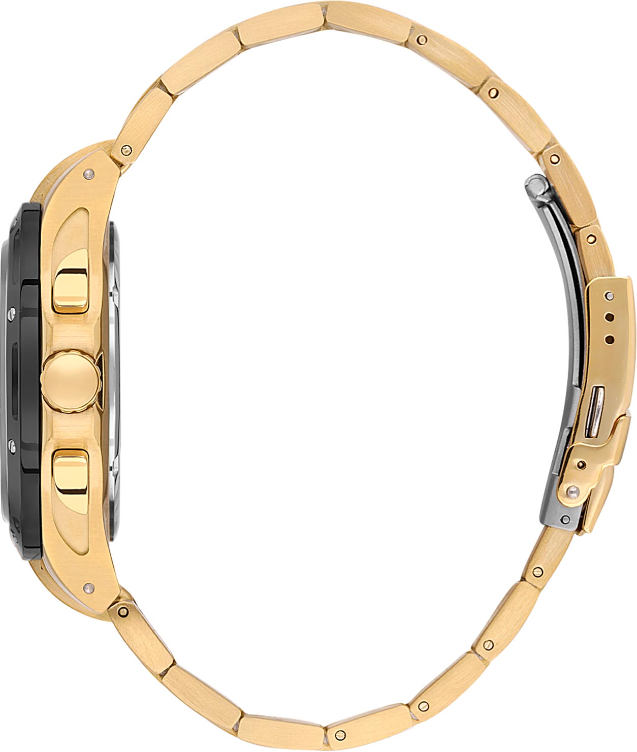 Стильный дизайн этих функциональных часов делает их эффектным украшением, которое будет превосходно дополнять ваш образ. Функциональные кварцевые мужские часы. Круглый стальной корпус с матовой и полированной отделкой. Декоративный безель. Циферблат выполнен по технологии Sunray (солнечные лучи) и украшен фирменным логотипом. Накладные метки в виде штрихов. 12-ти и 24-х часовой формат времени. Дата и день недели вынесены на отдельные циферблаты. Заостренные прямоугольные стрелки в стиле Baton. Стрелки и метки с люминесцентным покрытием, которое светится в темноте после непродолжительной зарядки на свету. Рифленая заводная головка с защитой. Стальной браслет с матовой и полированной отделкой. Раскладывающаяся застежка.