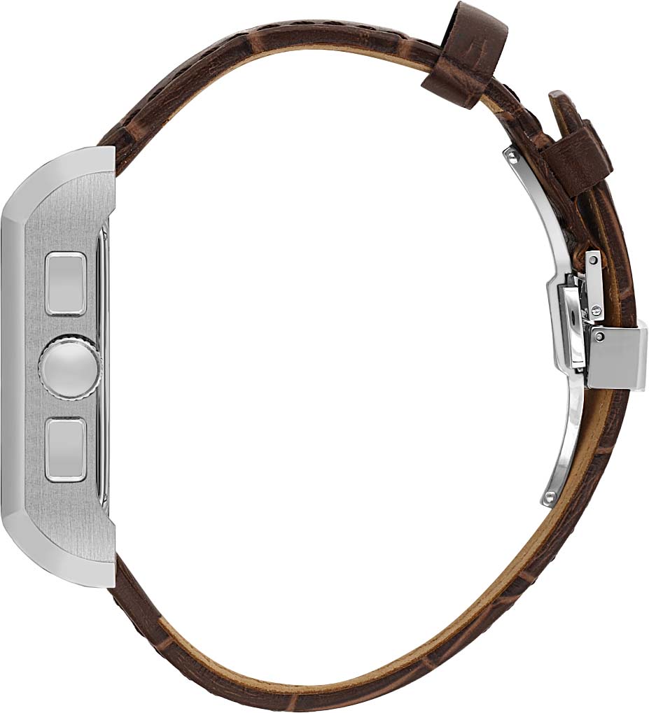 Практичные кварцевые мужские часы. Прямоугольный стальной корпус с матовой и полированной отделкой. 12-ти и 24-х часовой формат времени, второй часовой пояс и день недели вынесены на отдельные циферблаты. Окошко даты находится между отметками 4 и 5 часов. Двухуровневый циферблат с фактурной вставкой выполнен по технологии Sunray (солнечные лучи) и украшен фирменным логотипом. Метки в виде арабских цифр. Рифленая заводная головка. Удобный кожаный ремешок с раскладывающейся застежкой.