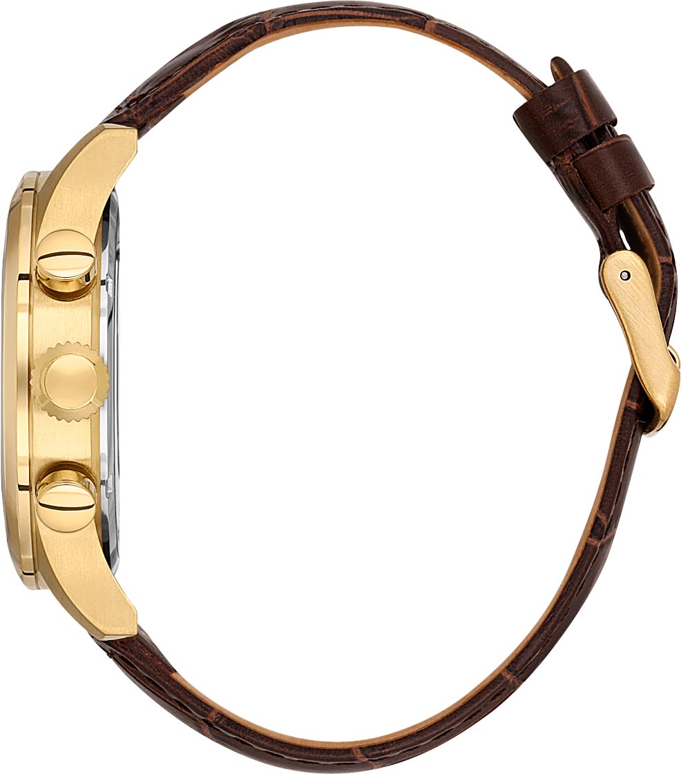 Гармоничный дизайн этих функциональных часов станет идеальным решением уверенного мужчины, идущего в ногу со временем. Подарочный набор - функциональные мужские часы и ручка. Круглый стальной корпус с матовой и полированной отделкой. Матовый циферблат украшен фирменным логотипом. Метки в виде арабских цифр. 12-ти и 24-х часовой формат времени. Окошко даты находится в положении 12 часов. Рифленая заводная головка. Удобный кожаный ремешок с классической застежкой.