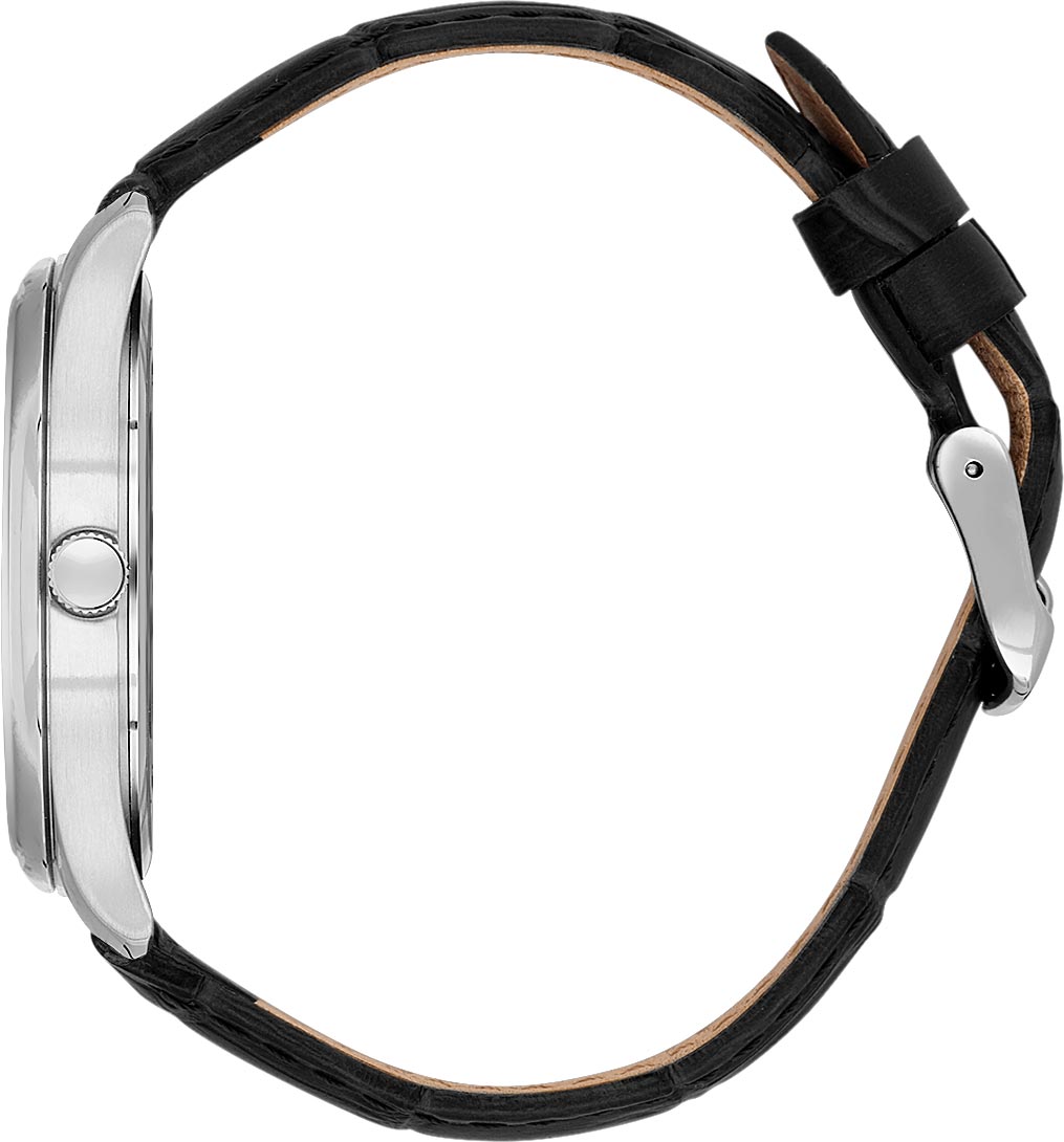 Дизайнерский минимализм этих классических часов благотворно влияет на творческий потенциал. Начните поиск новых впечатлений. Классические мужские часы. Круглый стальной корпус с полированной отделкой. Матовый циферблат украшен фирменным логотипом. Метки в виде арабских цифр. Листовидные стрелки. Окошко даты находится в положении 3 часа. Рифленая заводная головка. Удобный кожаный ремешок с классической застежкой.