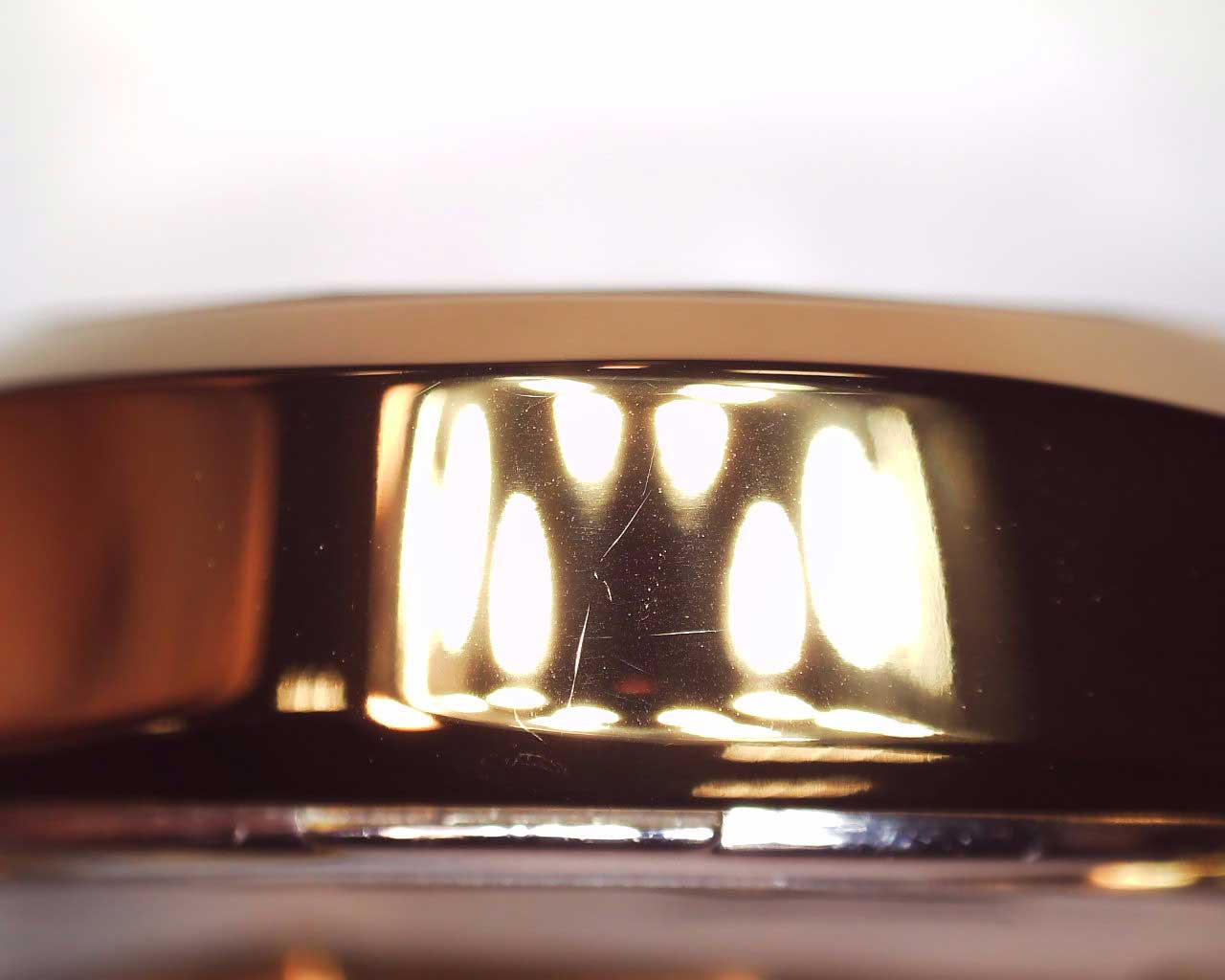 Миниатюрные наручные женские часы. Круглый стальной корпус с полированной отделкой. Циферблат выполнен по технологии Sunray (солнечные лучи) и украшен фирменным логотипом. Накладные метки в виде точек, украшенных кристаллами. Клиновидные стрелки в стиле Dauphine. Заводная головка в форме болта. Стальной браслет с полированной отделкой. Раскладывающаяся застежка.