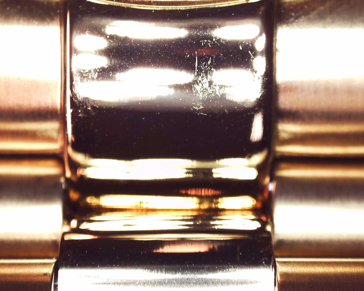 Прямоугольные стрелки в стиле Baton. Стрелки и метки с люминесцентным покрытием, которое светится в темноте после непродолжительной зарядки на свету. Рифленая заводная головка. Стальной браслет с матовой и полированной отделкой. Раскладывающаяся застежка.
