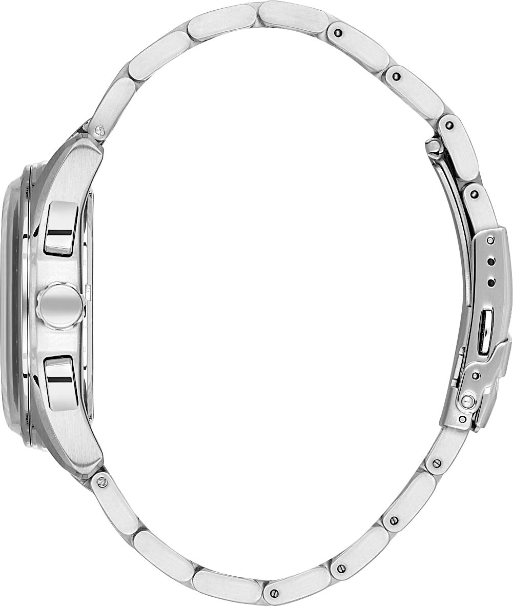 Окошко даты находится между отметками 4 и 5 часов. Заостренные прямоугольные стрелки в стиле Baton с люминесцентным покрытием, которое светится в темноте после непродолжительной зарядки на свету. Рифленая заводная головка. Стальной браслет с матовой и полированной отделкой. Раскладывающаяся застежка.