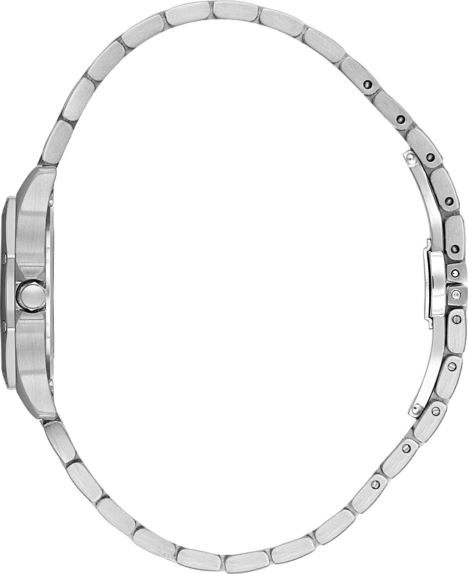 Мечевидные стрелки в стиле Sword. Заводная головка в форме болта с защитой. Стальной браслет с матовой и полированной отделкой. Раскладывающаяся застежка.