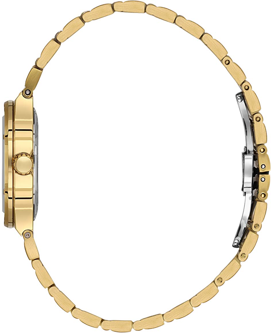 Unique. Миниатюрные наручные женские часы. Круглый стальной корпус с матовой отделкой. Безель украшен стильными винтами. Циферблат украшен фирменным логотипом. Накладные метки в виде штрихов и точек, украшенных кристаллами. Стальной браслет с полированной и матовой отделкой. Рифленая заводная головка. Раскладывающаяся застежка.