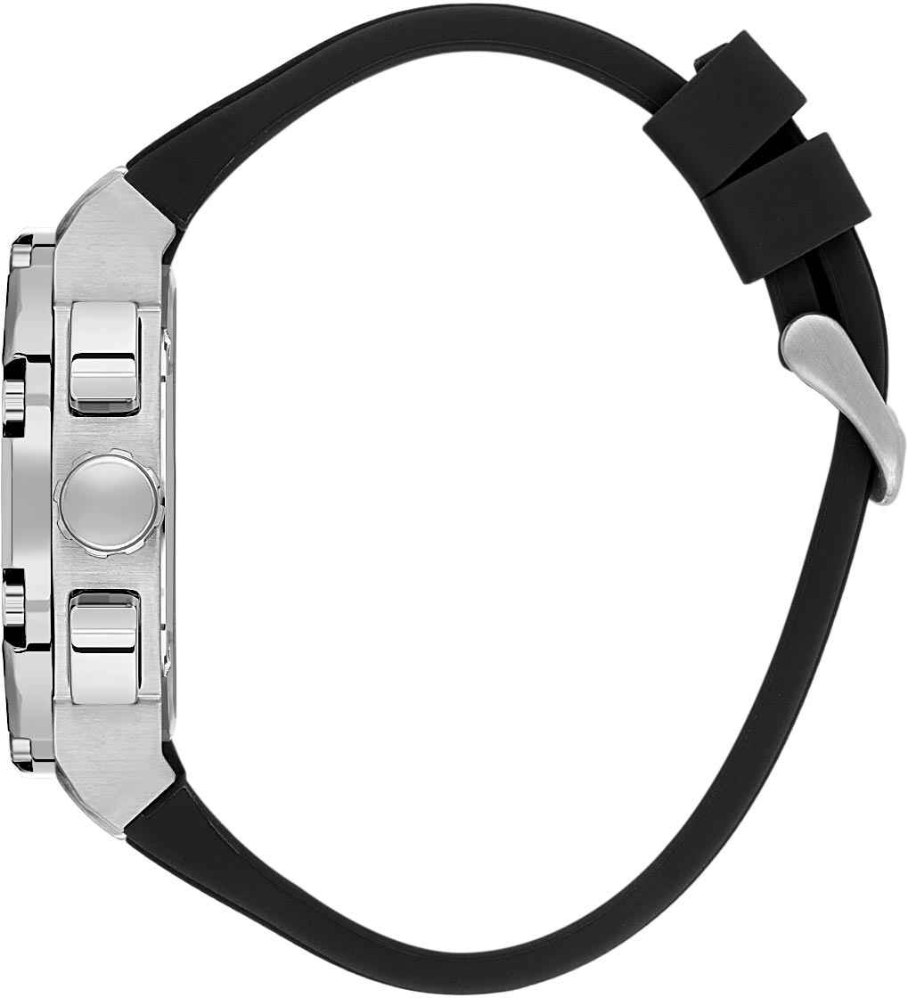 Продуманный дизайн часов смотрится стильно и современно в любой ситуации. Идеальный выбор для мужчин с безукоризненным чувством вкуса. Массивные мужские наручные часы. Круглый стальной корпус с матовой и полированной отделкой. Декоративный безель. 12-ти и 24-х часовой формат времени. Второй часовой пояс. Окошко даты находится между отметками 4 и 5 часов. Двухуровневый циферблат с прозрачной сеткой, украшен фирменным логотипом. Метки в виде штрихов. Мечевидные стрелки в стиле Sword. Стрелки и метки с люминесцентным покрытием, которое светится в темноте после непродолжительной зарядки на свету. Рифленая заводная головка. Удобный силиконовый ремешок с классической застежкой.