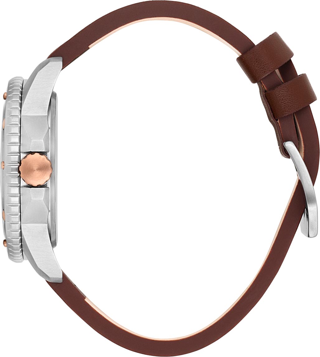 Благодаря сдержанному дизайну эти часы станут отличным аксессуаром на каждый день. Мужские наручные часы. Круглый стальной корпус с матовой отделкой. Рифленый безель с декоративными заклепками. Матовый циферблат украшен фирменным логотипом. Накладные метки в виде точек и штрихов. Мечевидные стрелки в стиле Sword. Стрелки и метки с люминесцентным покрытием, которое светится в темноте после непродолжительной зарядки на свету. Рифленая заводная головка с защитой. Удобный кожаный ремешок с классической застежкой.