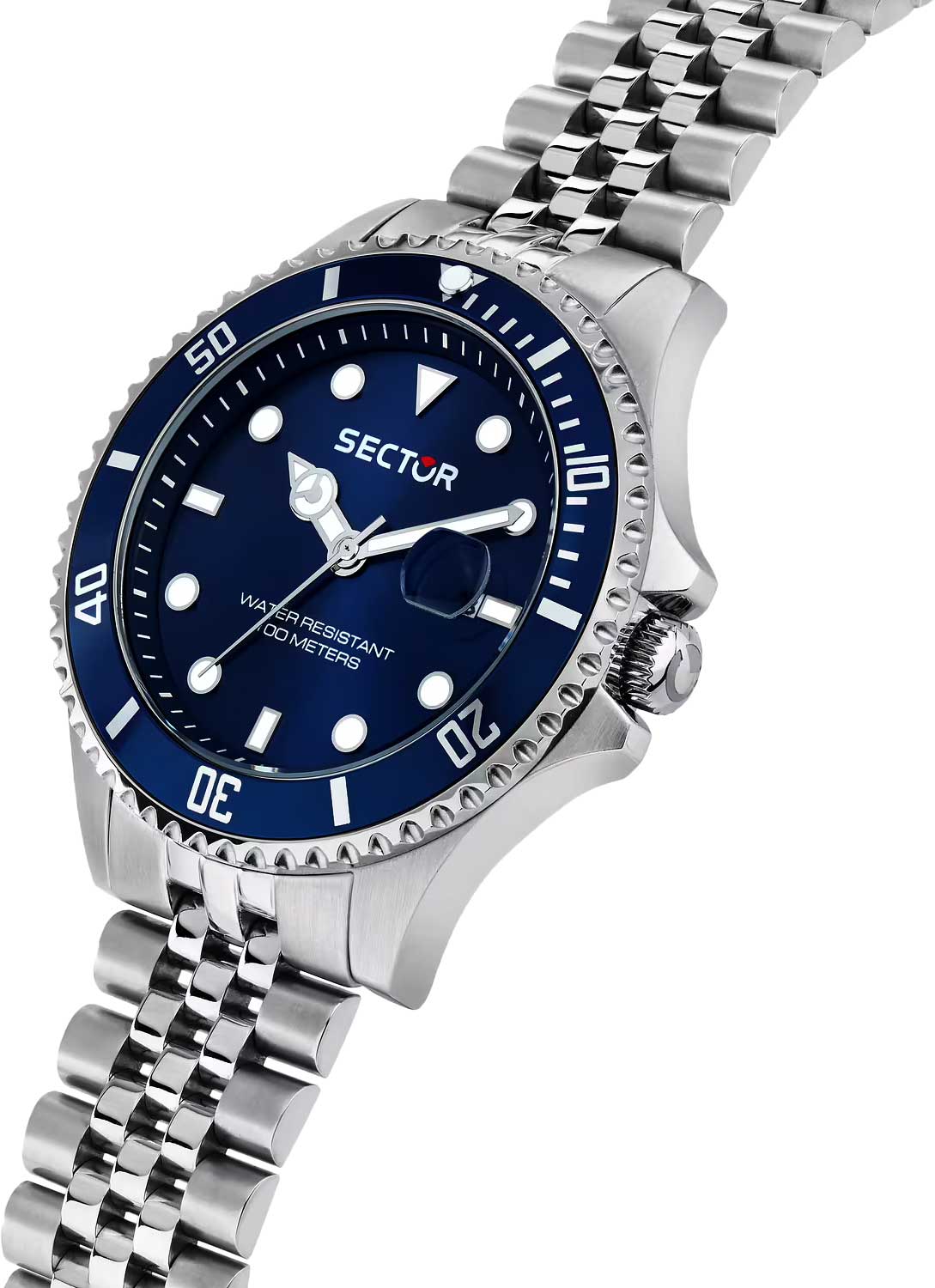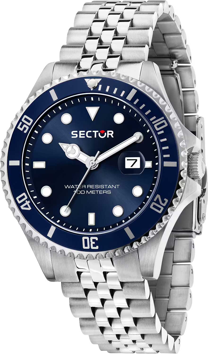 Мужские часы. Циферблат выполнен по технологии Sunray (солнечные лучи). Метки в виде точек и штрихов. Окошко даты с увеличительным стеклом находится в положении 3 часа. Завинчивающаяся заводная головка с защитой. Завинчивающаяся задняя крышка. Браслет с раскладывающейся застежкой. Застежка с системой блокировки.