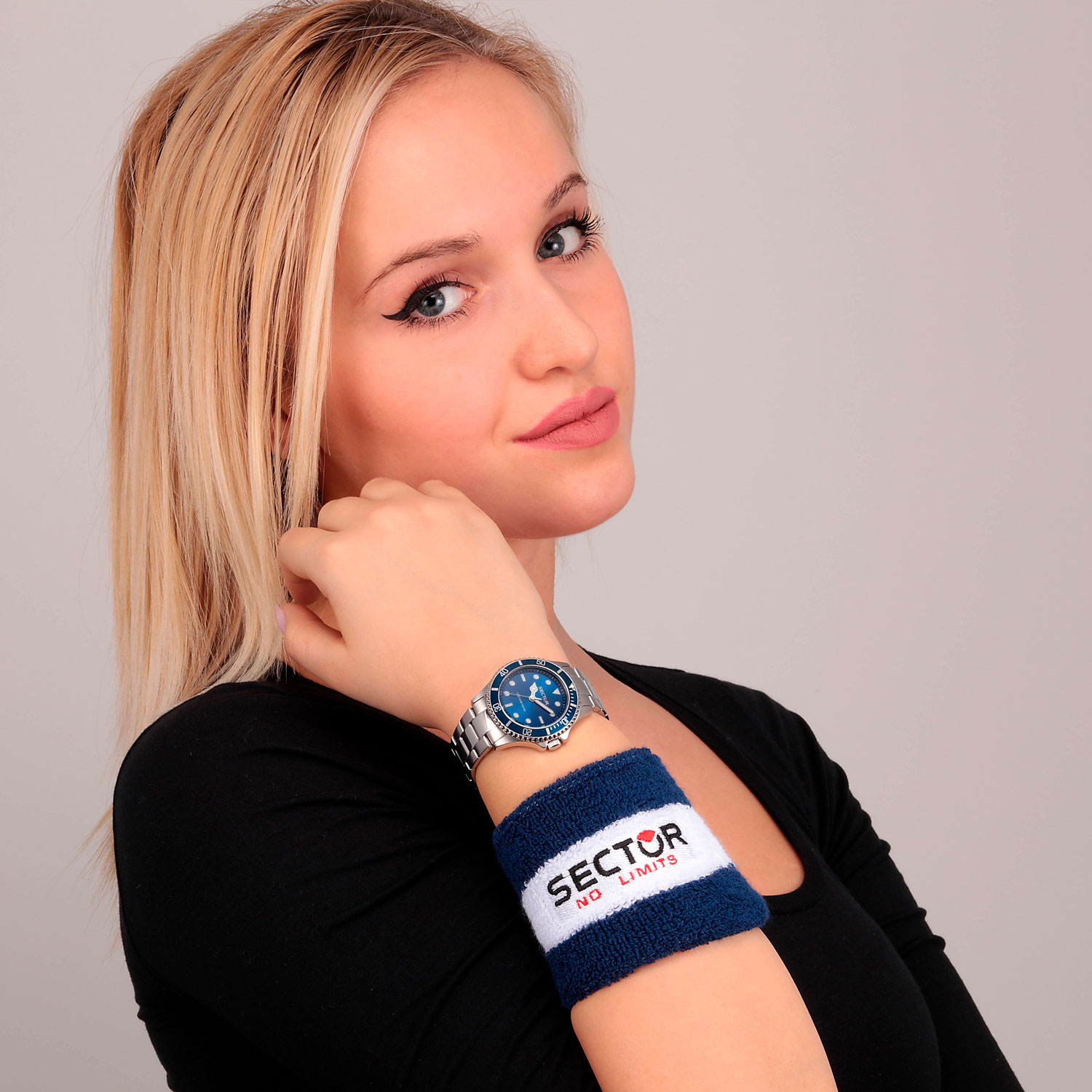 Стильный дизайн этого спортивного аксессуара будет всегда актуален в образе активной девушки. 230. Циферблат выполнен по технологии Sunray (солнечные лучи). Метки в виде штрихов и точек. Заводная головка с защитой. Браслет с раскладывающейся застежкой. Застежка с системой блокировки. В комплекте фирменный напульсник.